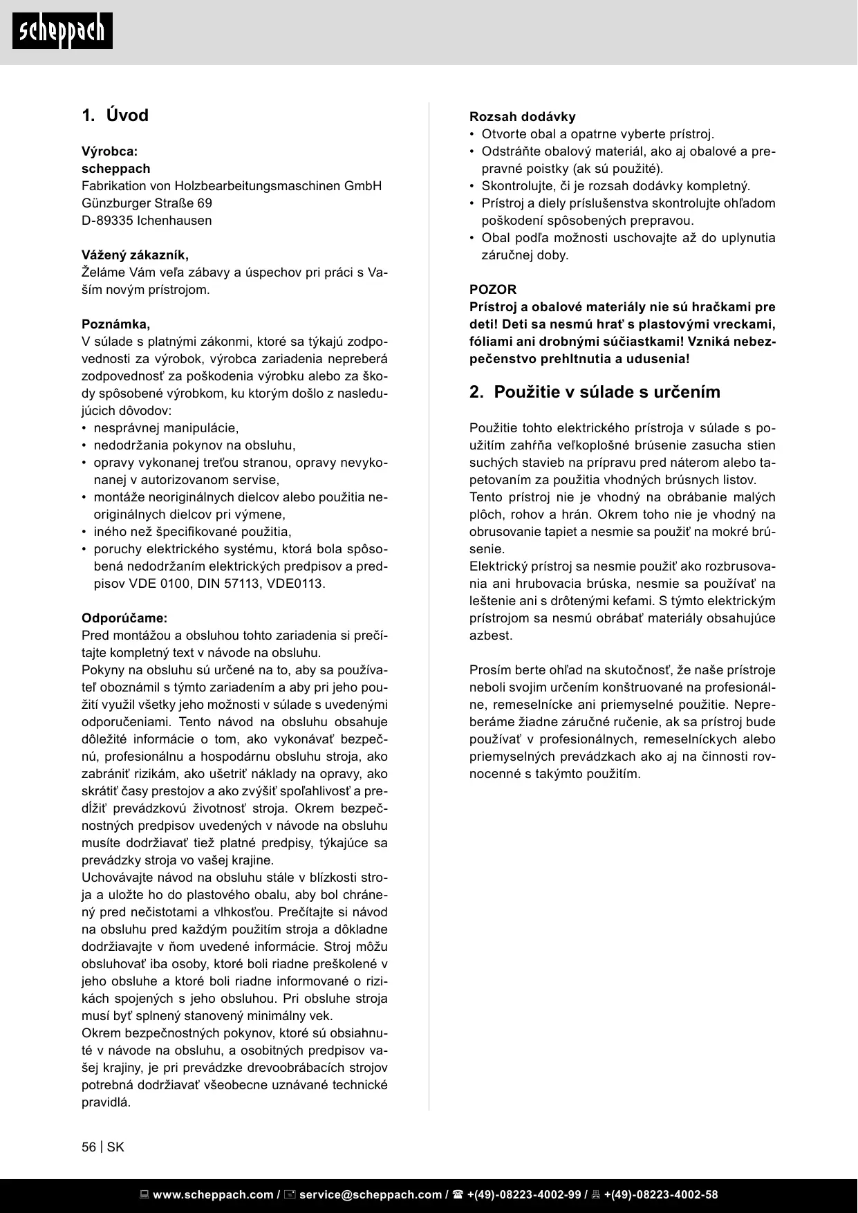 NÁVOD NA OBSLUHU DS930 SCHEPPACH