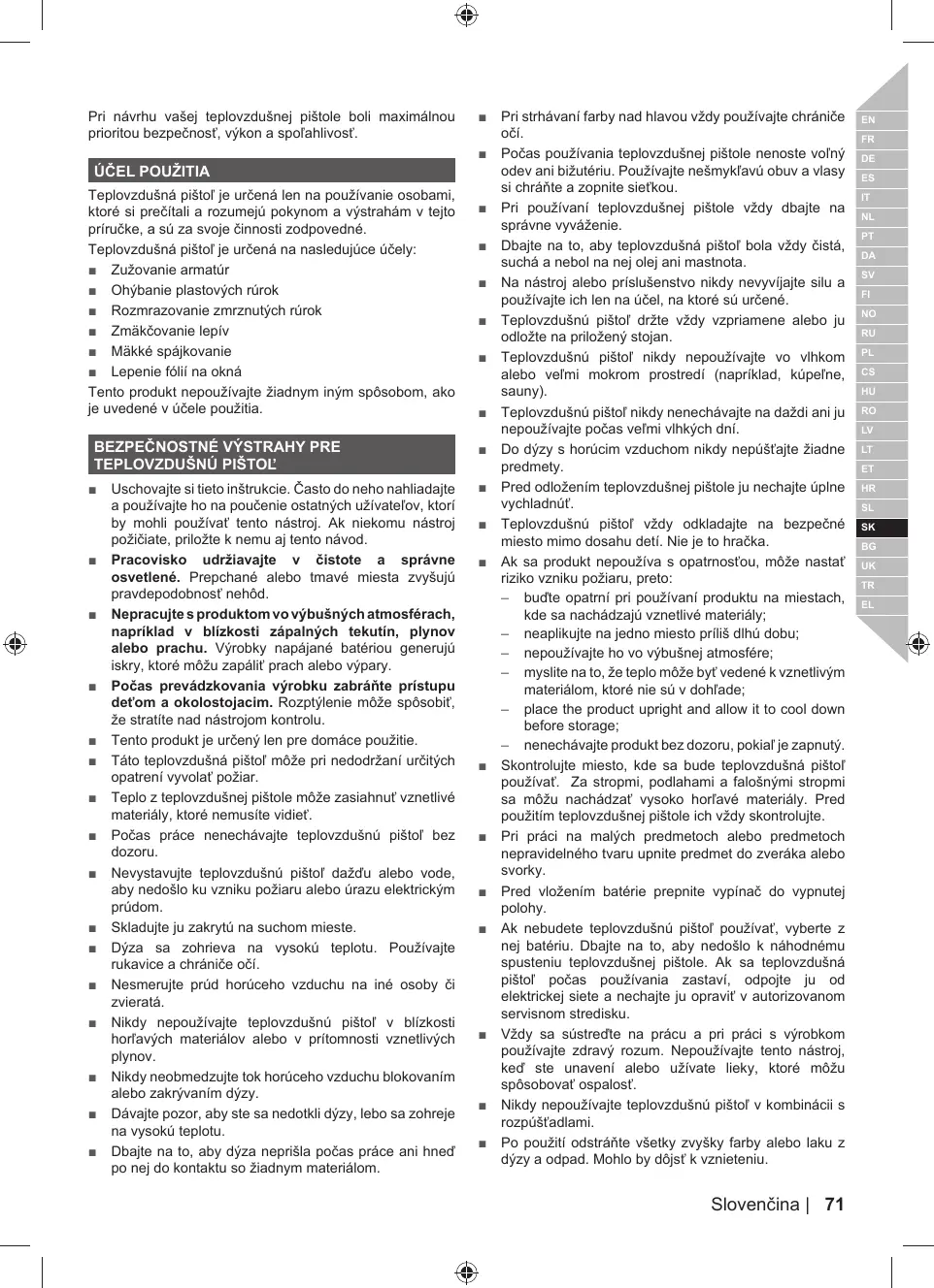 Teplovzduënü pistol vzdy odkladajte na bezpeëné miesto mimo dosahu deti. ie je to hraëka.