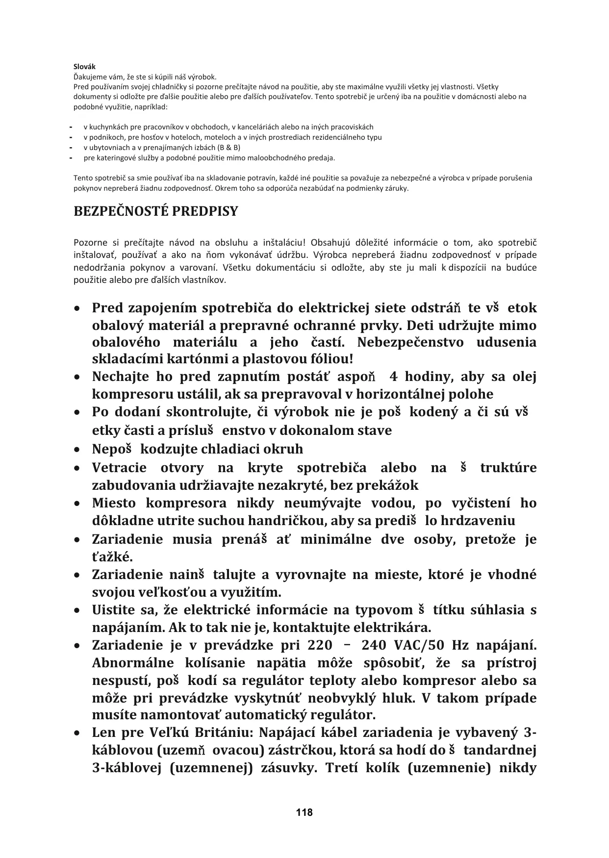 Cet appareil doit être utilisé uniquement pour conserver de la nourriture ; tout autre usage est considéré comme dangereux et le fabricant ne sera pas tenu responsable en cas de mauvaise utilisation. Il est donc recommandé de prendre connaissance des conditions de garantie.