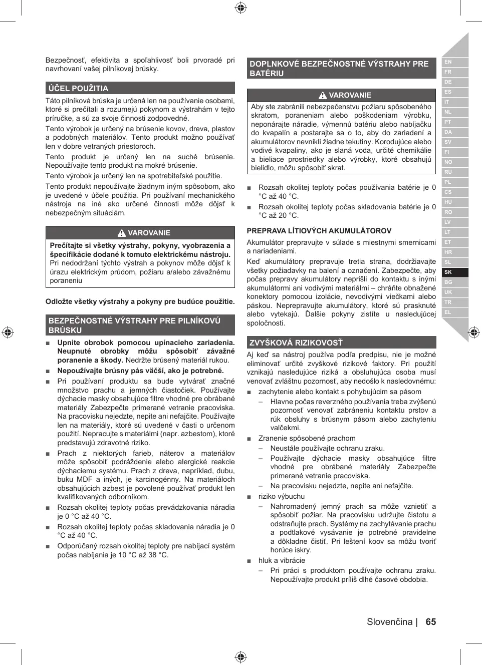 À VAROVANIE Aby ste zabränili nebezpeëenstvu poziaru spôsobeného skratom, poraneniam alebo_ poSkodeniam vyÿrobku, neponärajte néradie, vÿmennü batériu alebo nabijaëku do kvapalin a postarajte sa o to, aby do zariadeni a akumulétorov nevnikli Ziadne tekutiny. Korodujüce alebo vodivé kvapaliny, ako je slanä voda, urëité chemikälie a bieliace prostriedky alebo vÿrobky, ktoré obsahujü bielidio, môzu spôsobit skrat.