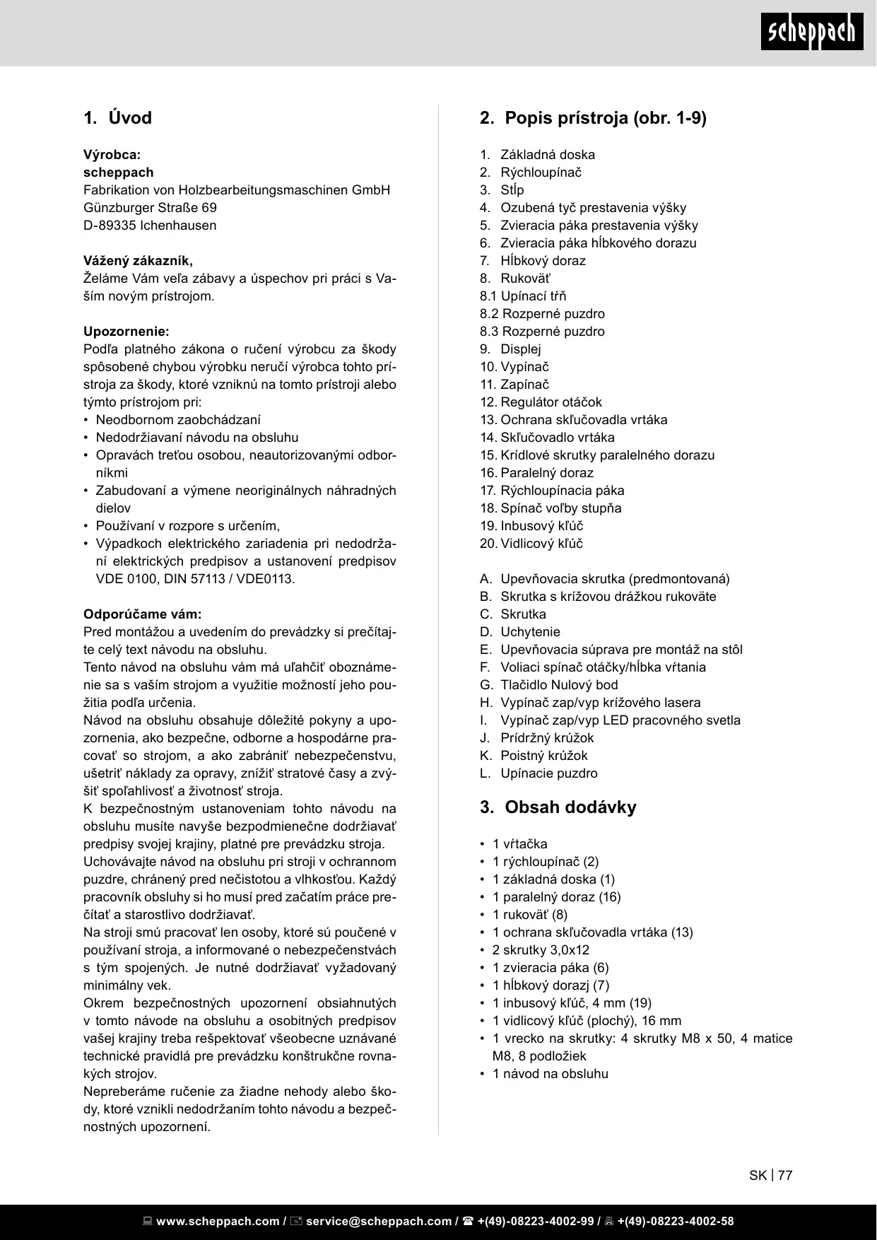 NÁVOD NA OBSLUHU DP60 SCHEPPACH