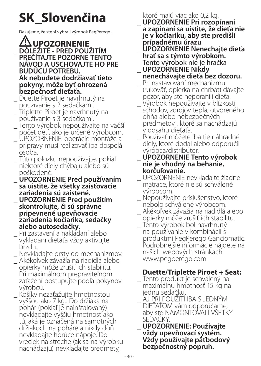 NÁVOD NA OBSLUHU DUETTE PIROET PEG PEREGO