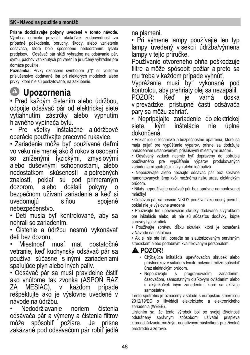 + Pred kaZdÿm üistenim alebo üdrzbou, odpoite odsävaë pâr od elektrickej siete vytiahnutim zéstréky alebo vypnutim hlavného vypinaëa bytu.