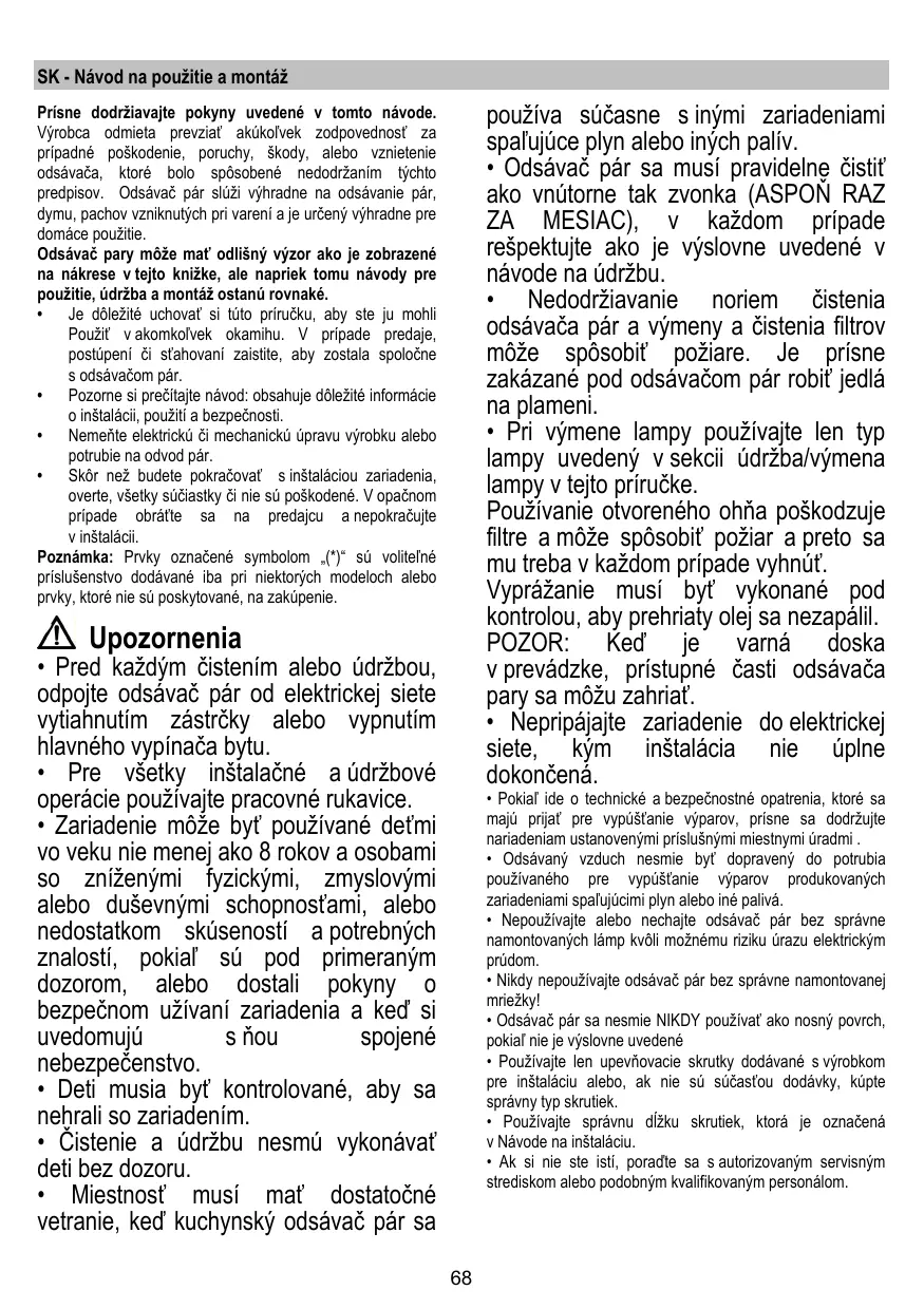 NÁVOD NA OBSLUHU L64,5CM IX/A/60 ELICA