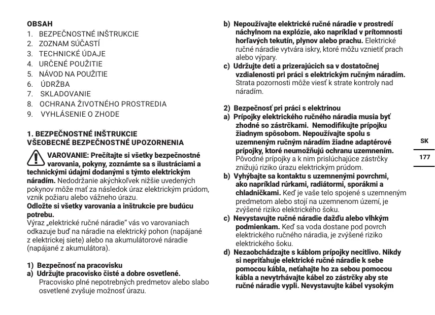 b) Nepouñivajte elektrické ruëné nâradie v prostredi nächyinom na explézie, ako napriklad v pritomnosti horfawÿch tekutin, plynov alebo prachu. Elektrické ruëné néradie vytvära iskry, ktoré môzu vznietit prach alebo vÿpary.