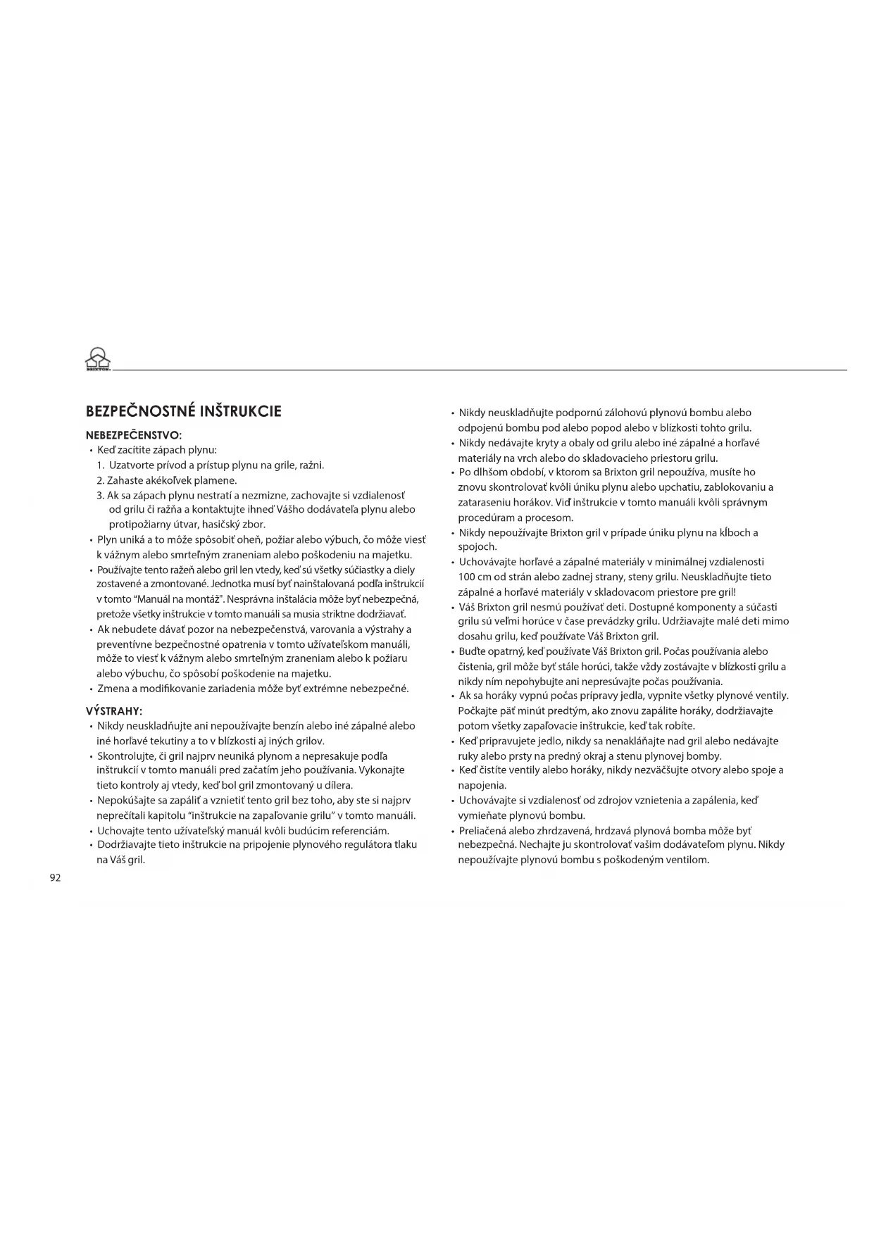 • Buďte opatrný, keď používate Váš Brixton gril. Počas používania alebo