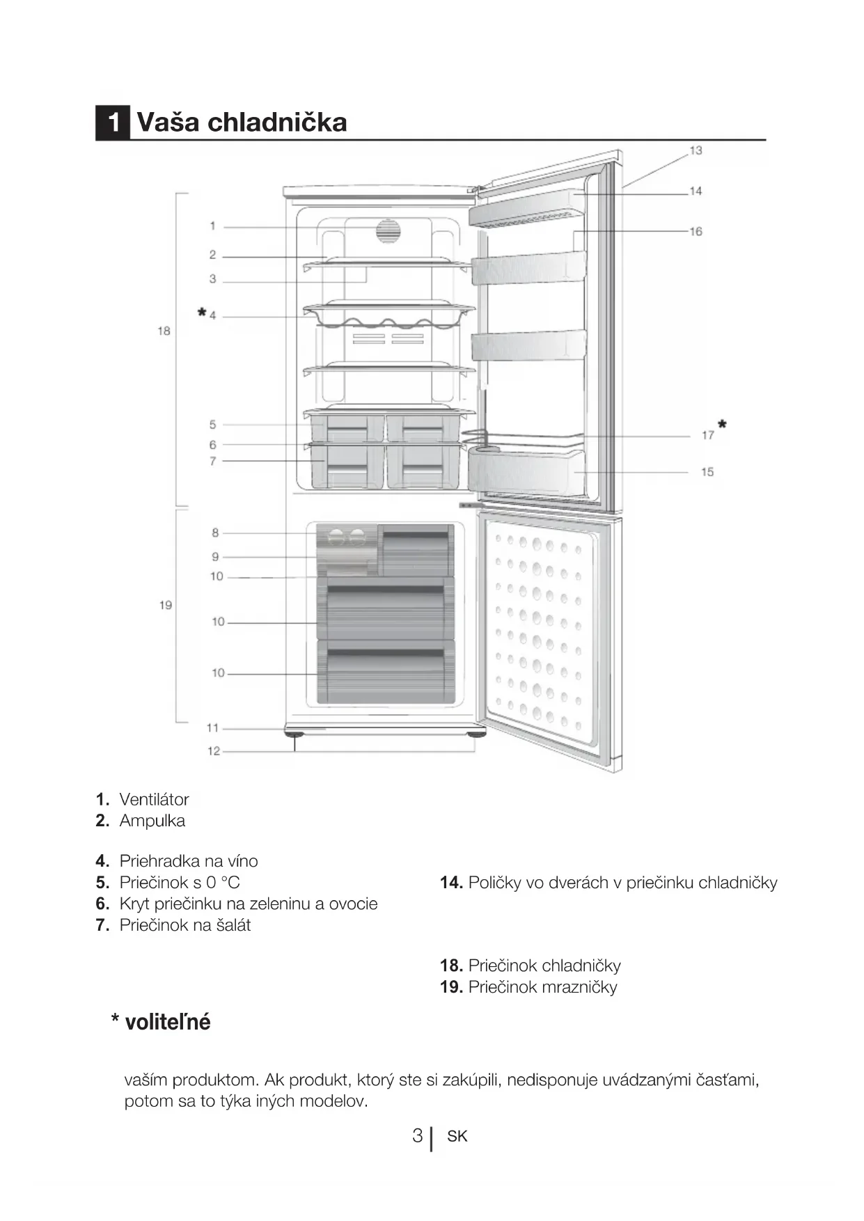 • Na ochladenie chladničky sa používajú ventilátory. Je to úplne normálne a neznamená to
