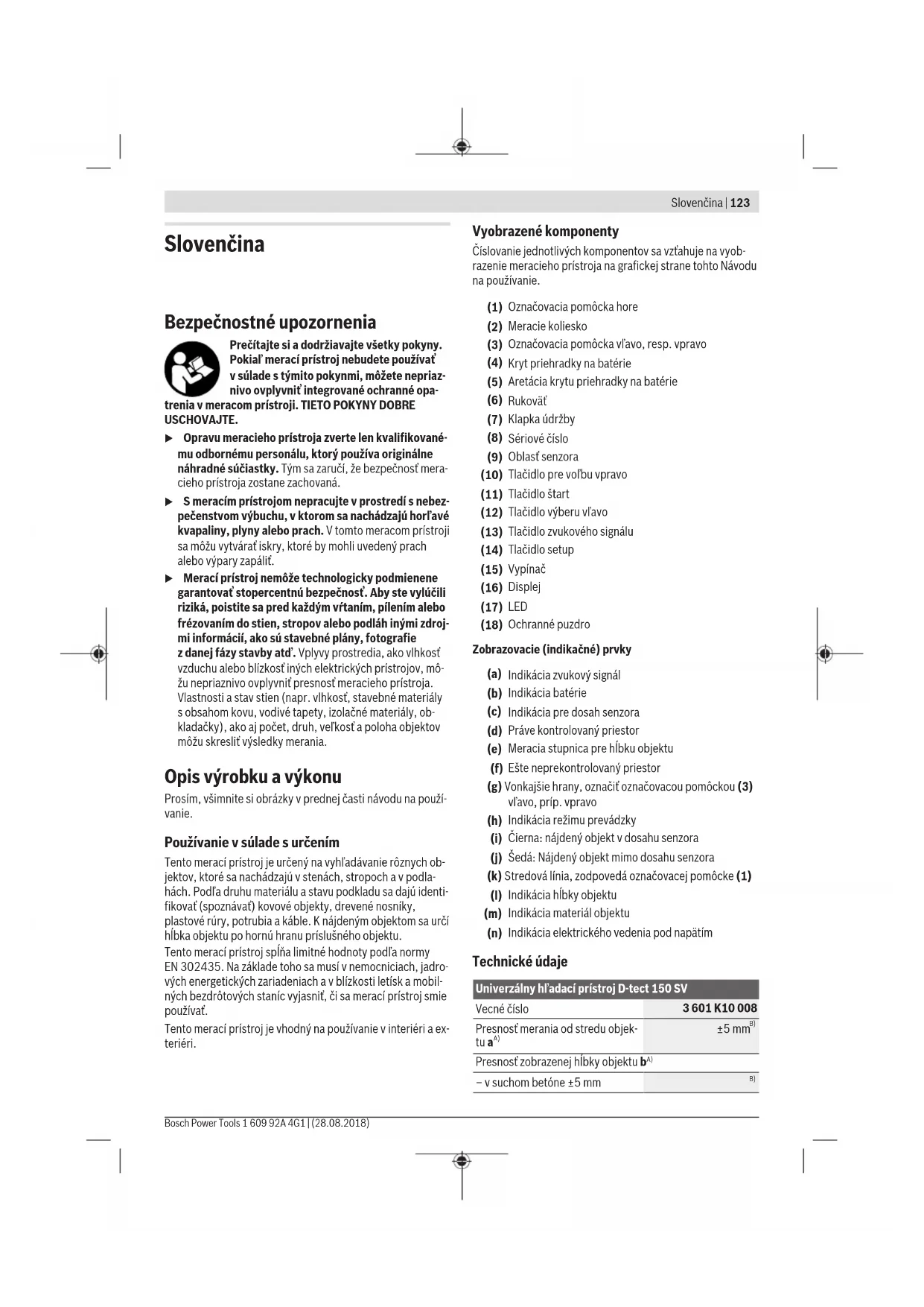 číslo (8) uvedené na typovom štítku. u Výsledok merania so zreteľom na presnosť ahĺbku vy- hľadávania môže byť pri nepriaznivých pomeroch