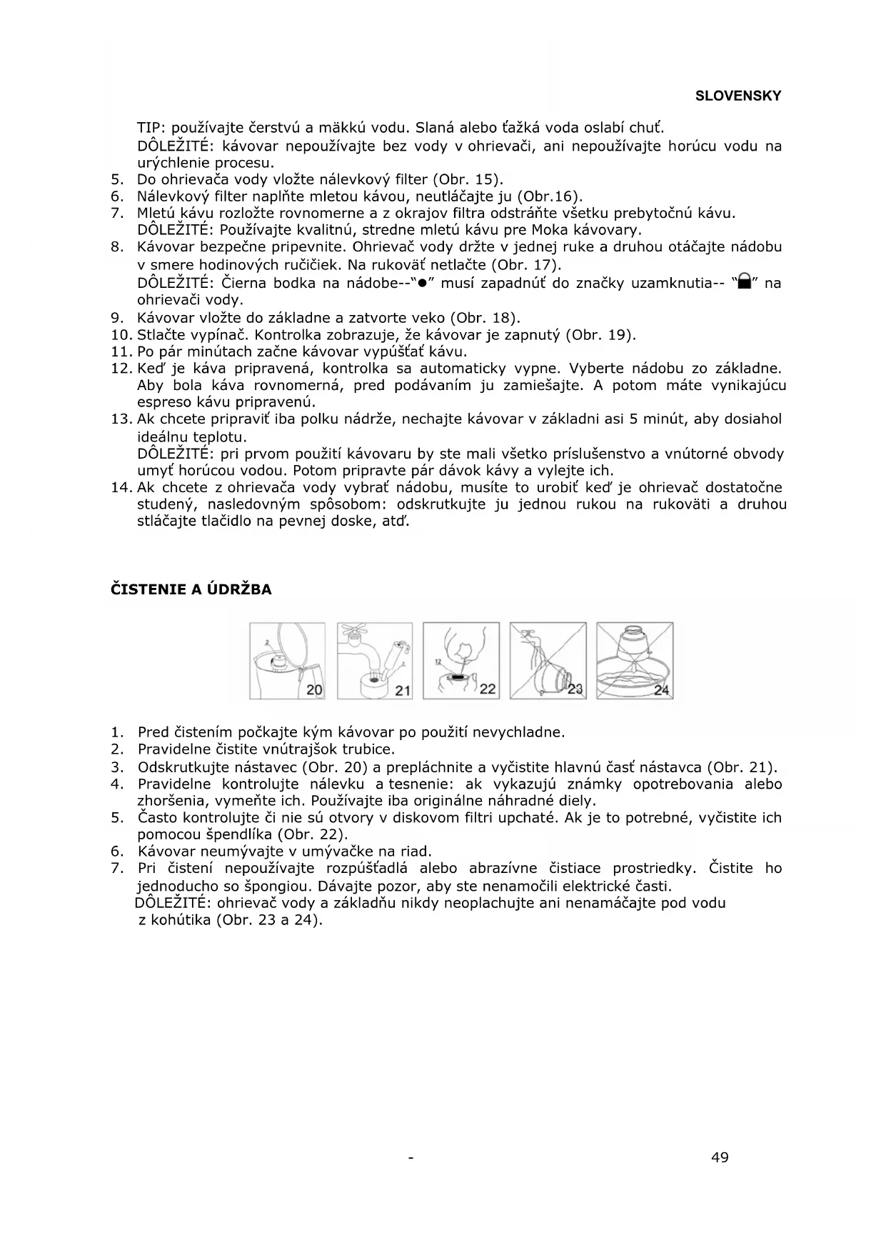 - Toto zariadenie bolo vyrobené na „vyrobu kávy". Nikdy nepoužívajte iné extrakty, kakaový prášok, harmanček, iné výtažky alebo Rozpustné látky: mohl by upchat otvory vo filtri.