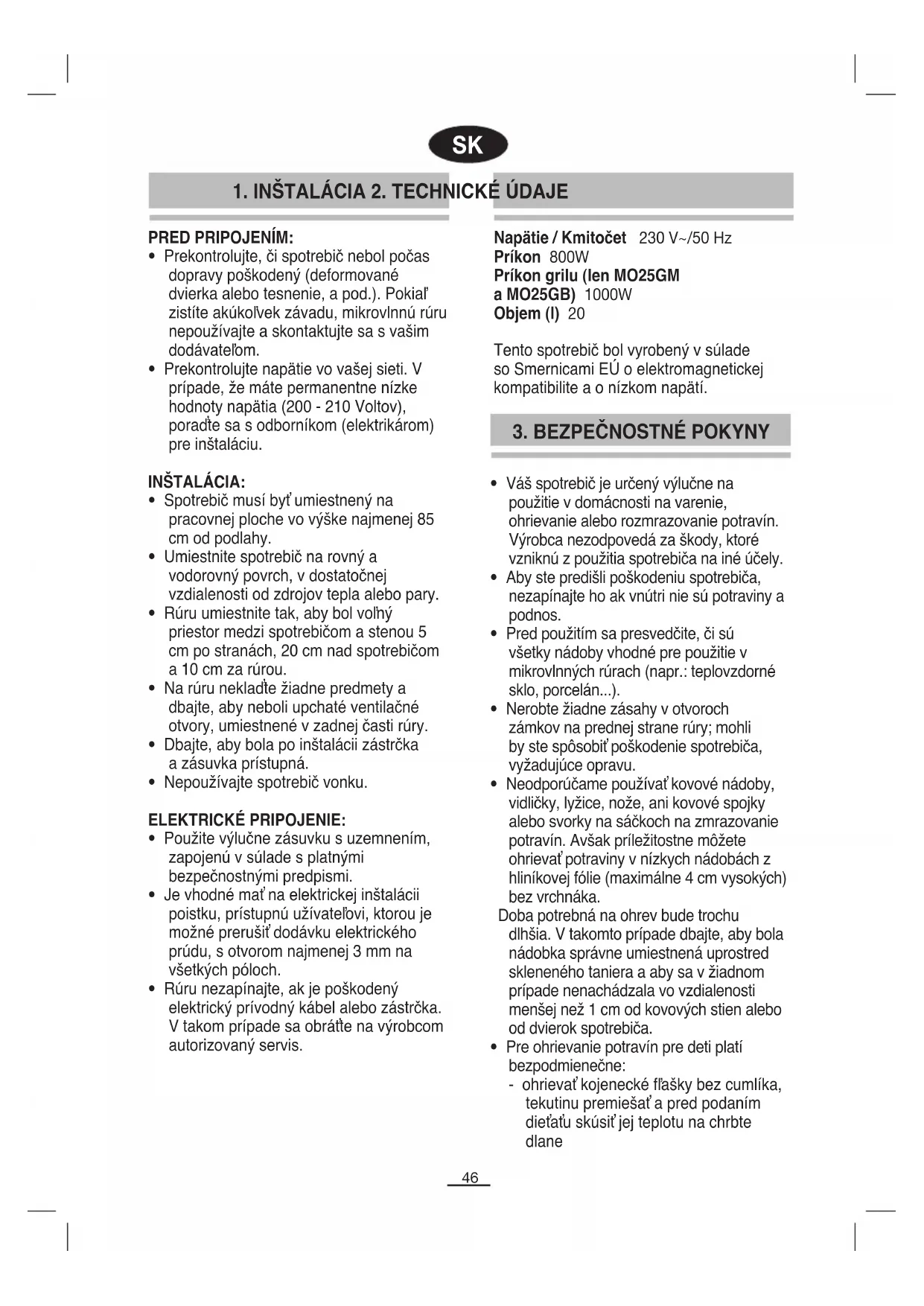 ELEKTRICKÉ PRIPOJENIE: