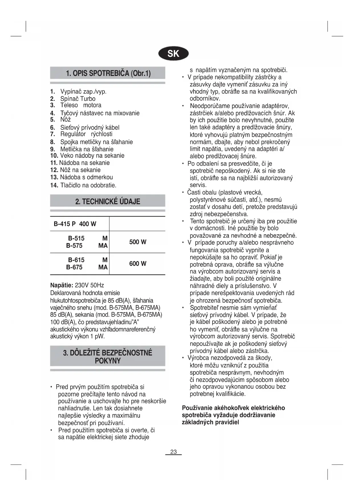 rýchlosti (iba u modelov B-615M, B-675MA)