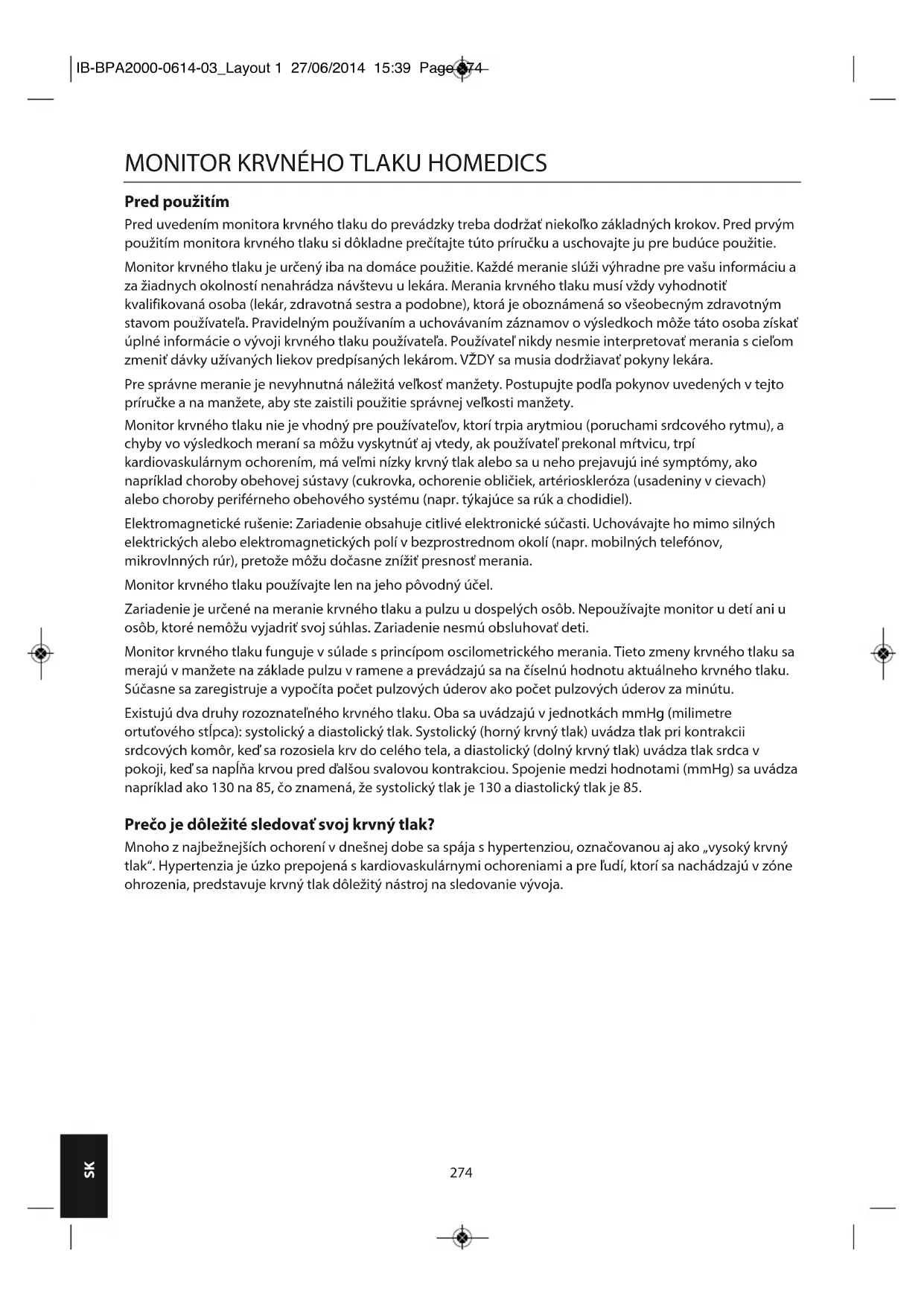 NÁVOD NA OBSLUHU BPA2000EU HOMEDICS