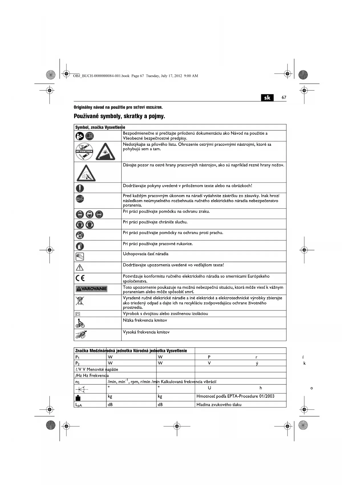 | m, s, kg, A, mm, V, W, Hz, N, °C, dB, min, m/s2 | m, s, kg, A, mm, V, W, Hz, N, °C, dB, min, m/s2 | Základné a odvodené jegnotky Medzinárodného systému jegnotiek SI. | |
