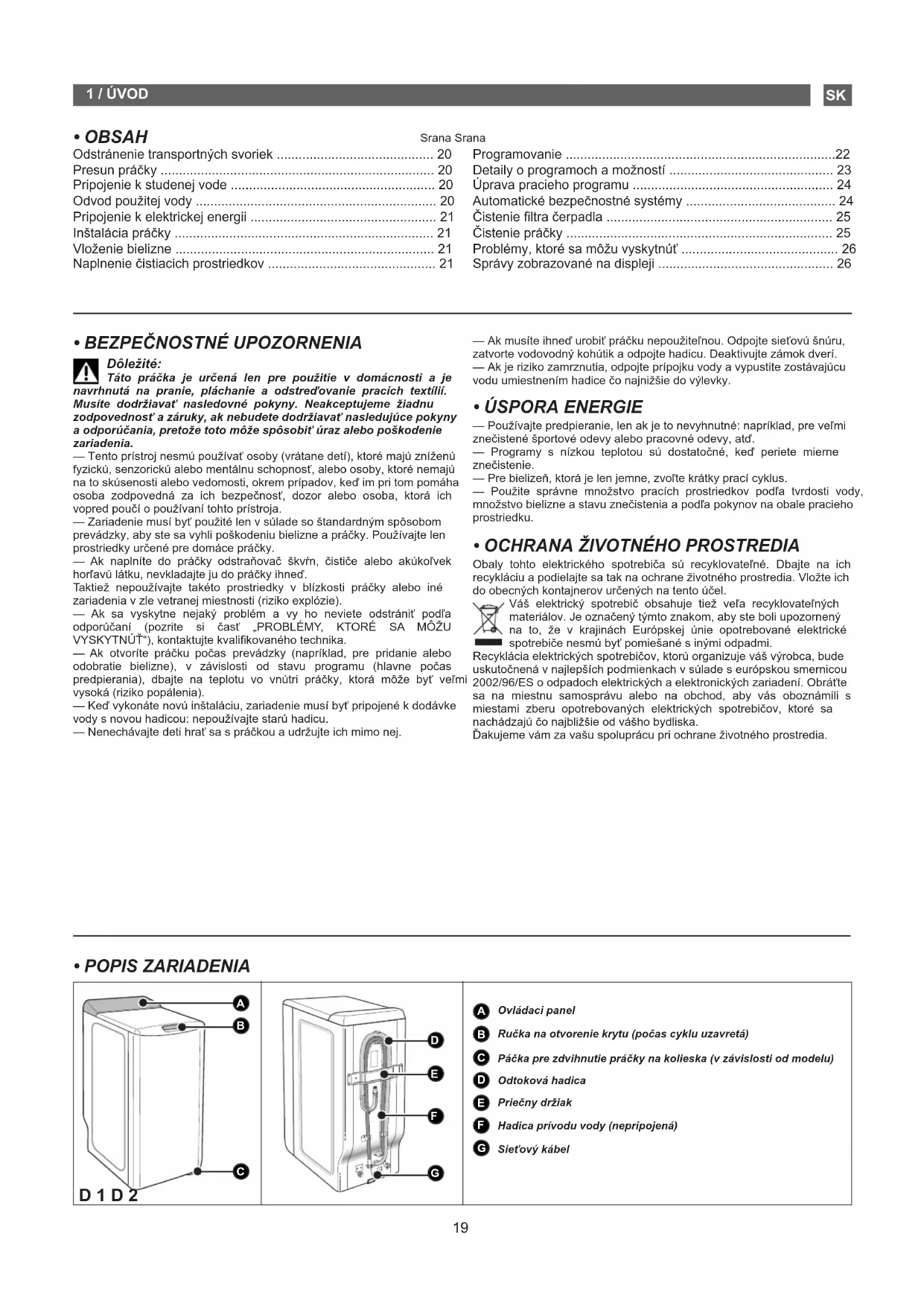 • OCHRANA ŽIVOTNÉHO PROSTREDIA Obaly tohto elektrického spotrebiča sú recyklovateľné. Dbajte na ich