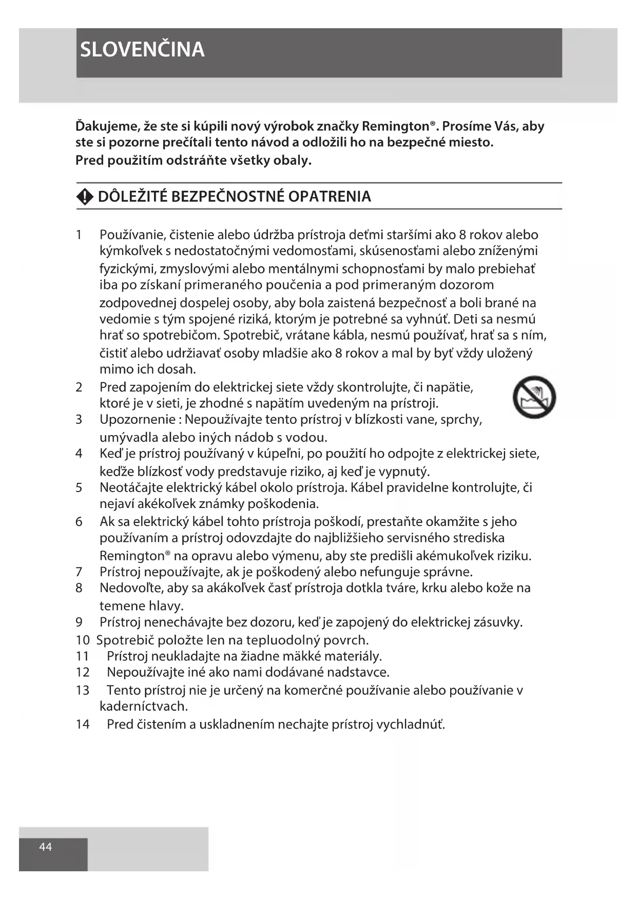 Ďakujeme, že ste si kúpili nový výrobok značky Remington®. Prosíme Vás, aby