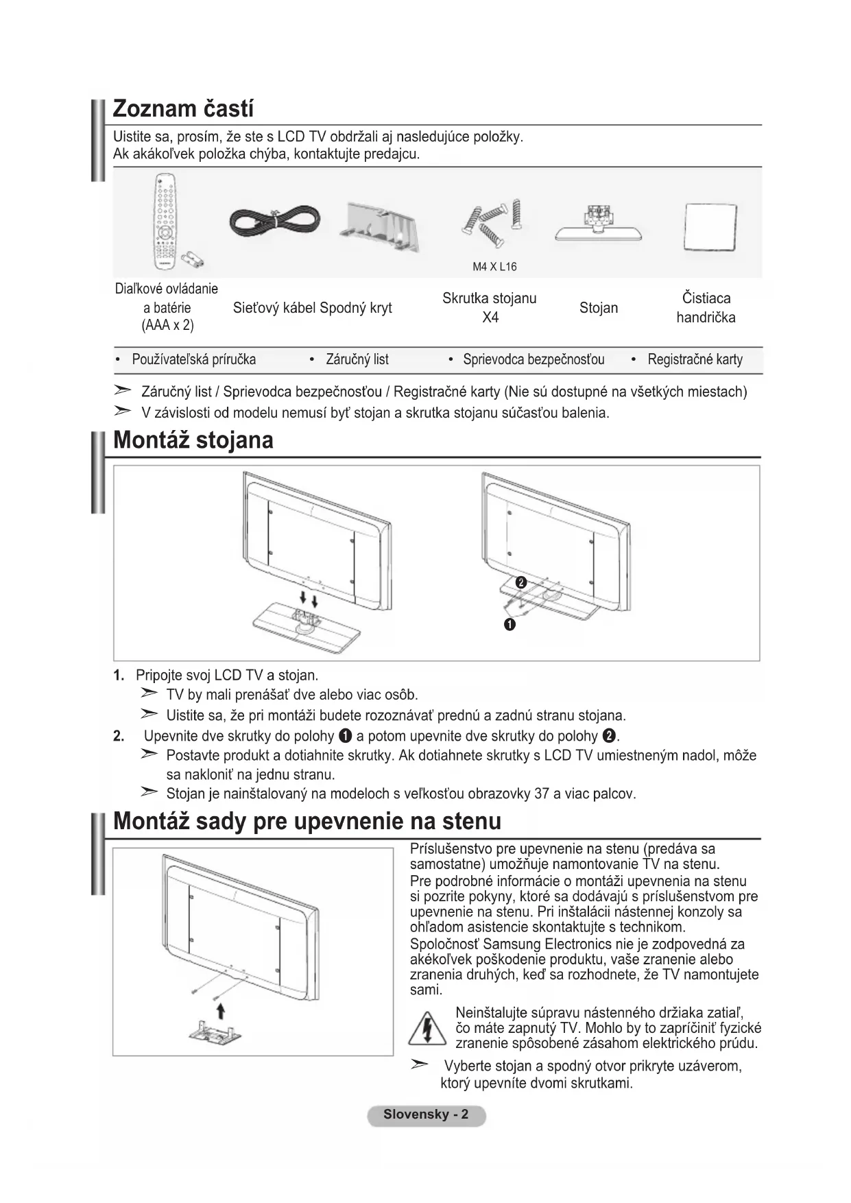 Uistite sa, prosím, že ste s LCD TV obdržali aj nasledujúce položky.