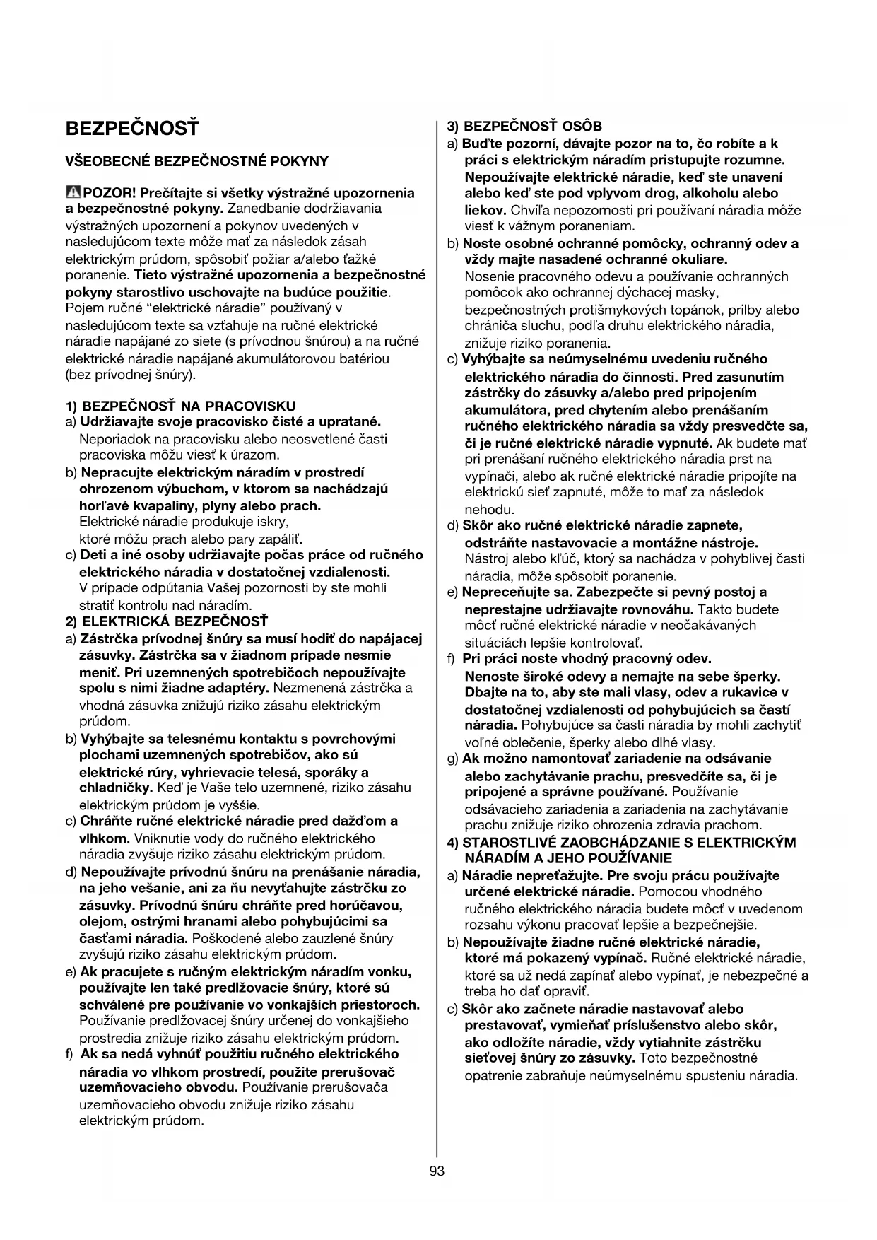 VŠEOBECNÉ BEZPEČNOSTNÉ POKYNY POZOR! Prečítajte si všetky výstražné upozornenia