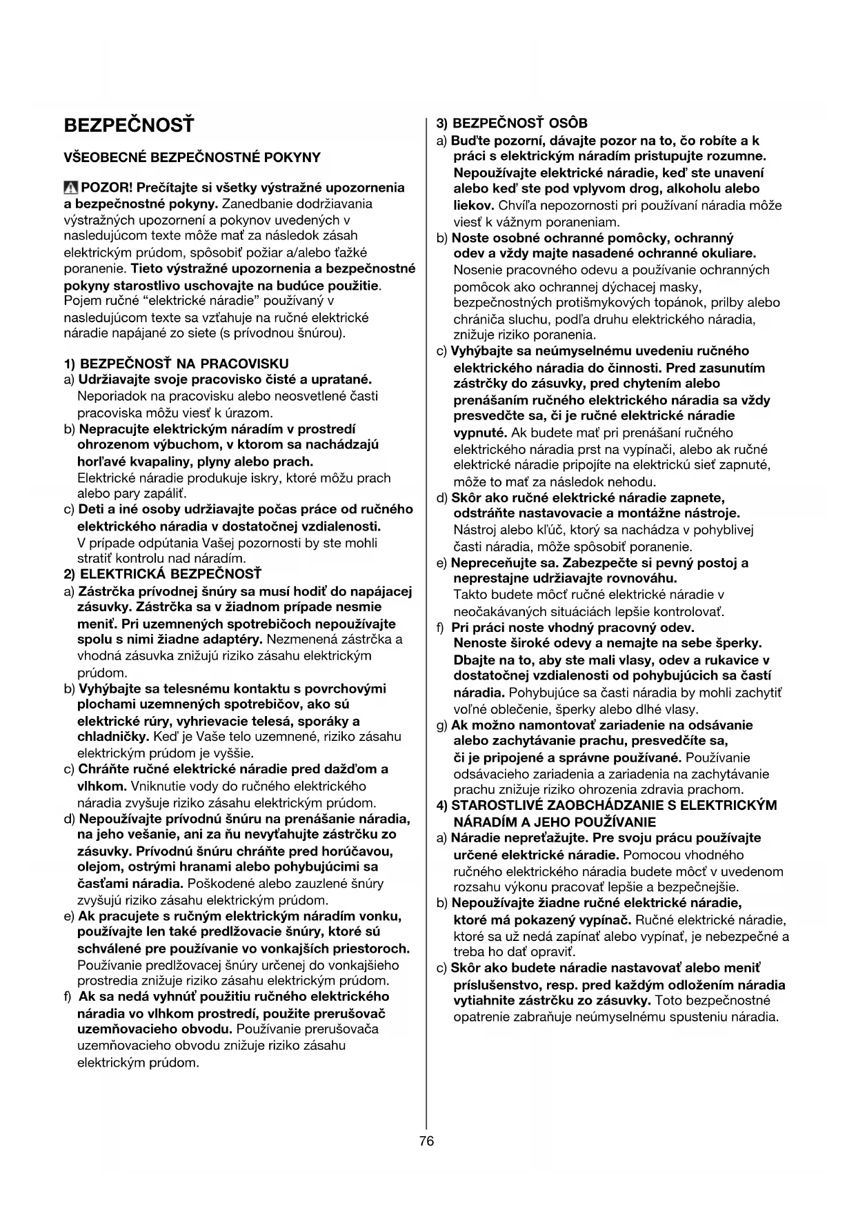 VŠEOBECNÉ BEZPEČNOSTNÉ POKYNY POZOR! Prečítajte si všetky výstražné upozornenia