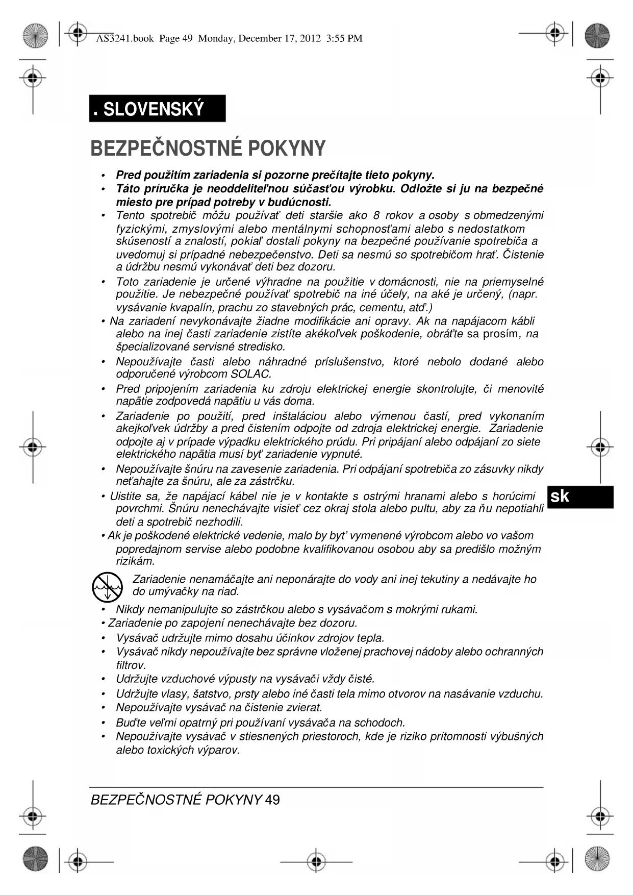AS3241 - Vysávač SOLAC - Bezplatný návod na obsluhu