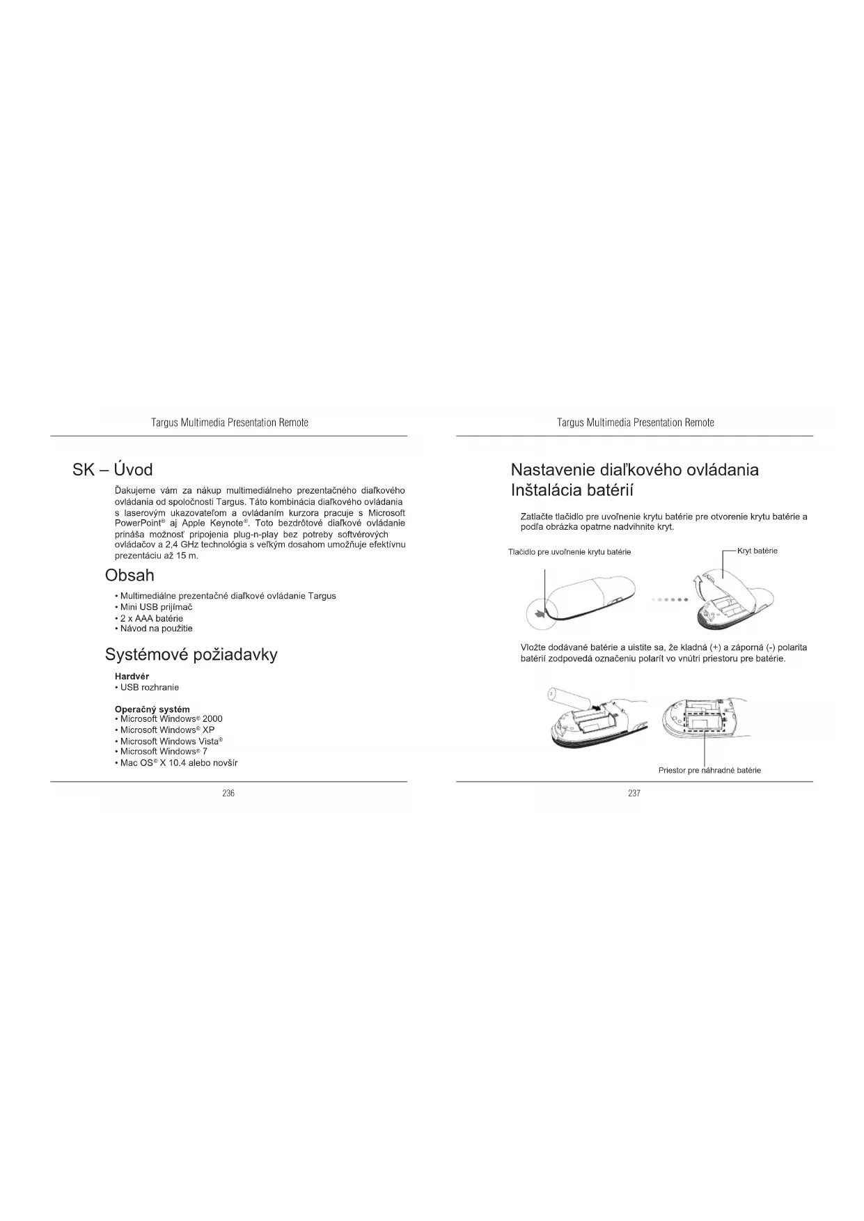 ovládania od spoločnosti Targus. Táto kombinácia diaľkového ovládania