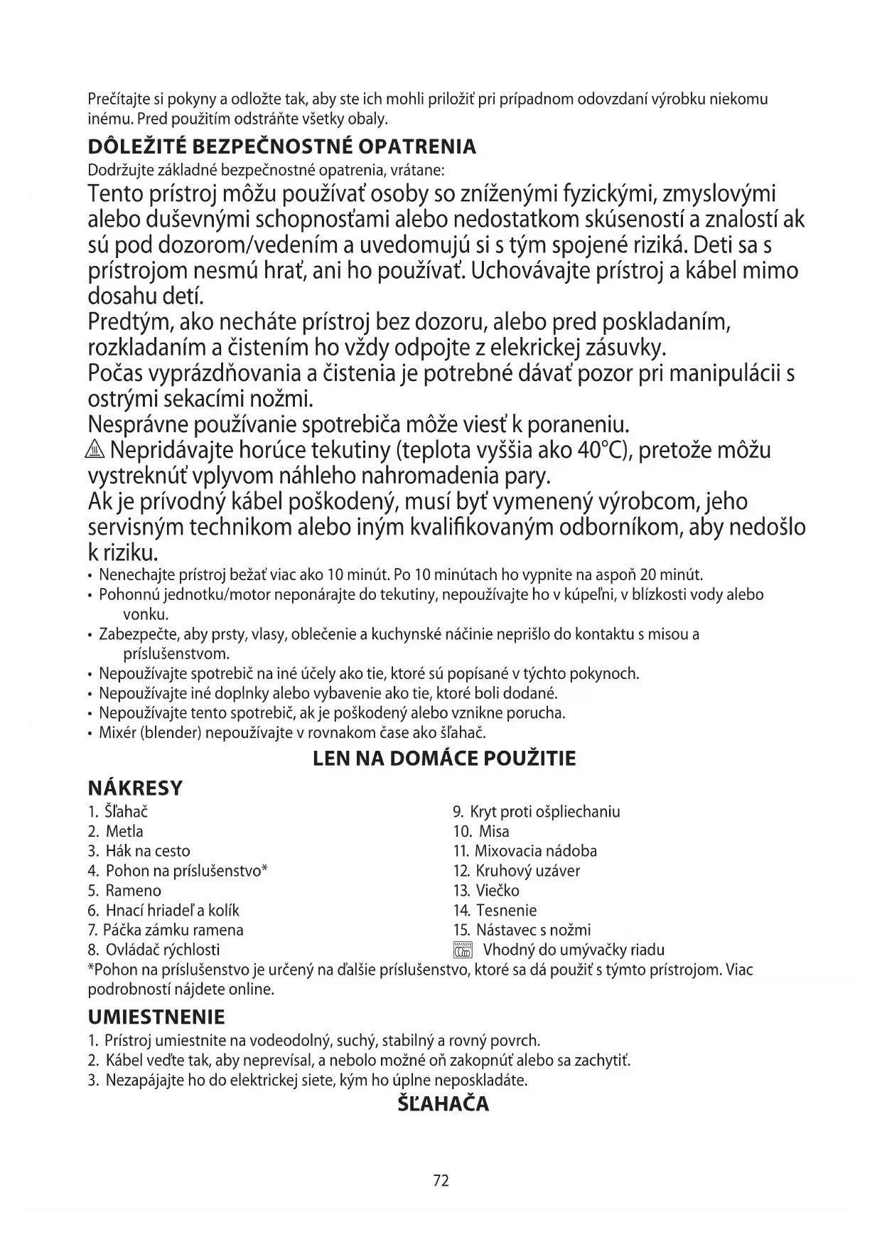 • Mixér (blender) nepoužívajte v rovnakom čase ako šľahač.