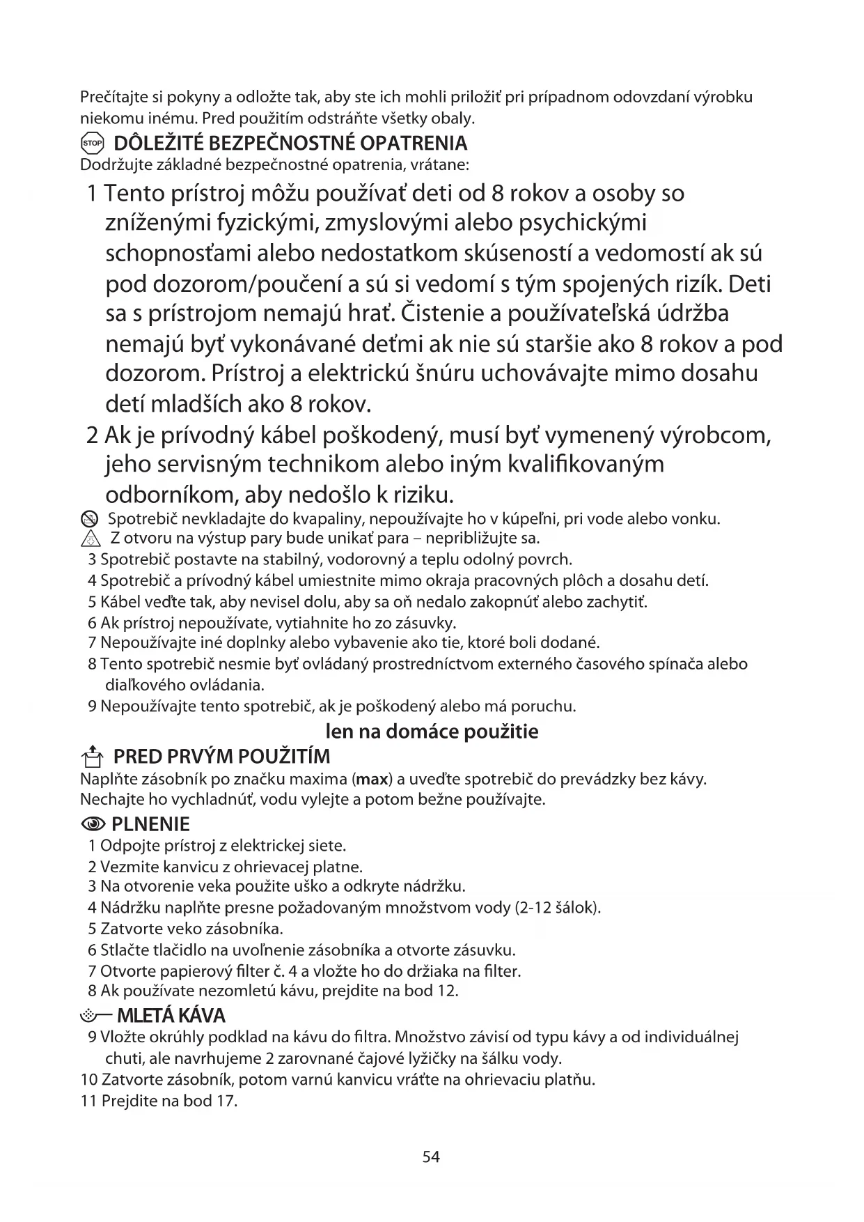 , Nepoužívajte tento prístroj iba ako mlynček na kávu. Ak mu neumožníte prejsť celým cyklom