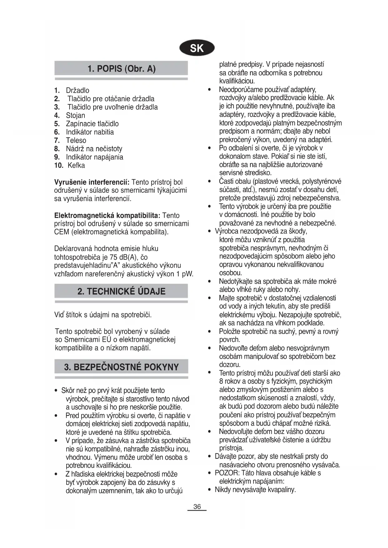 2. TECHNICKÉ ÚDAJE Viď štítok s údajmi na spotrebiči.