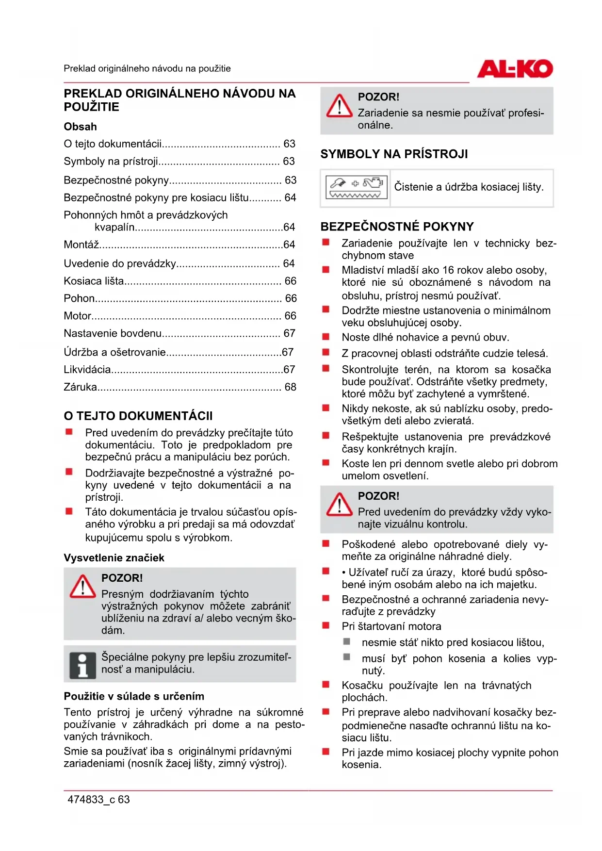 NÁVOD NA OBSLUHU BM 875 III AL-KO