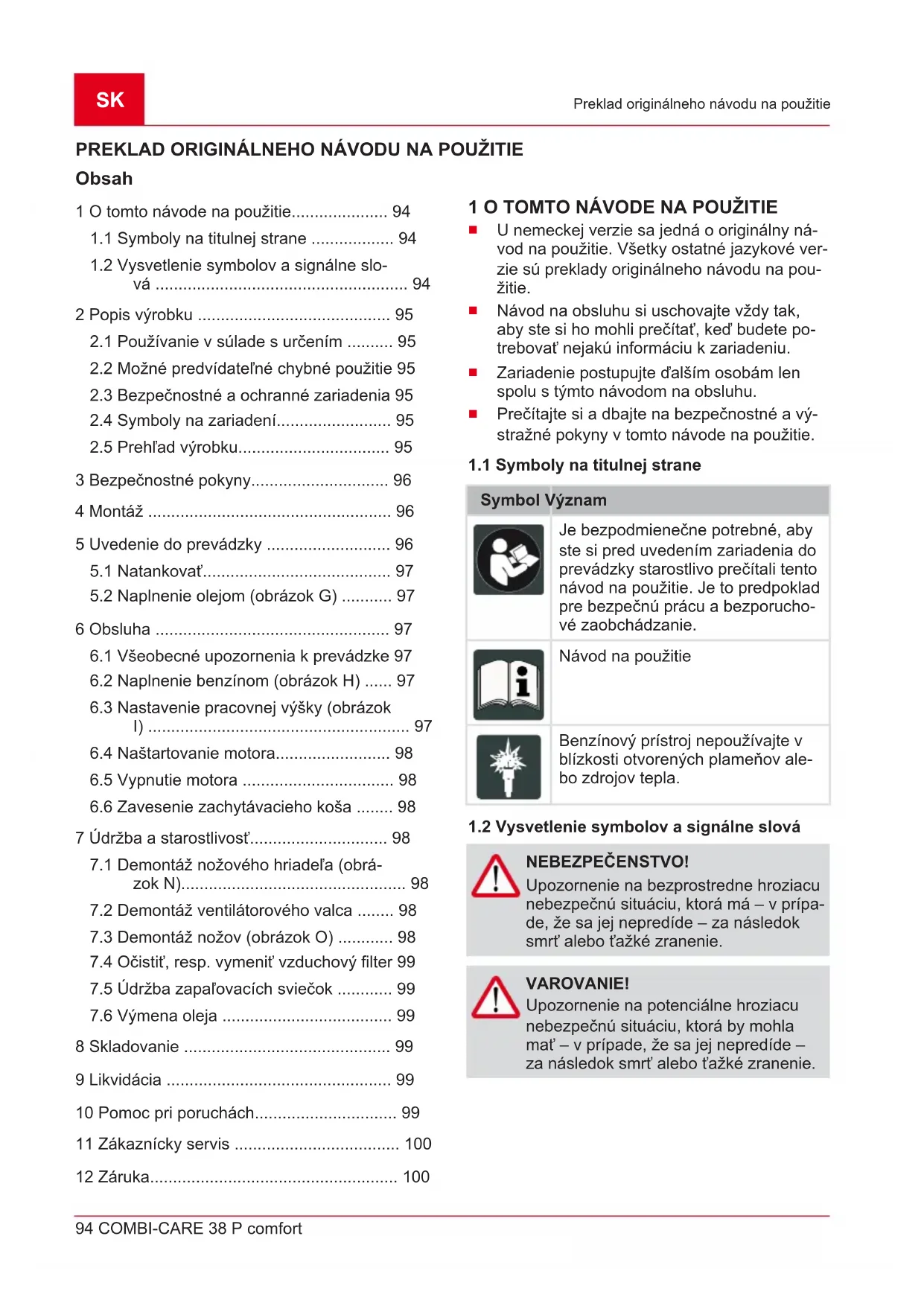 NÁVOD NA OBSLUHU Combi Care 38 P Comfort AL-KO