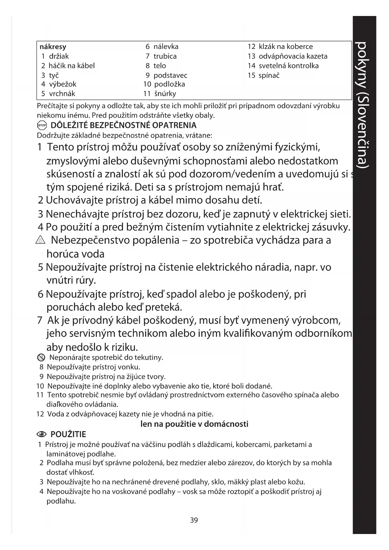 1 Prístroj je možné používať na väčšinu podláh s dlaždicami, kobercami, parketami a