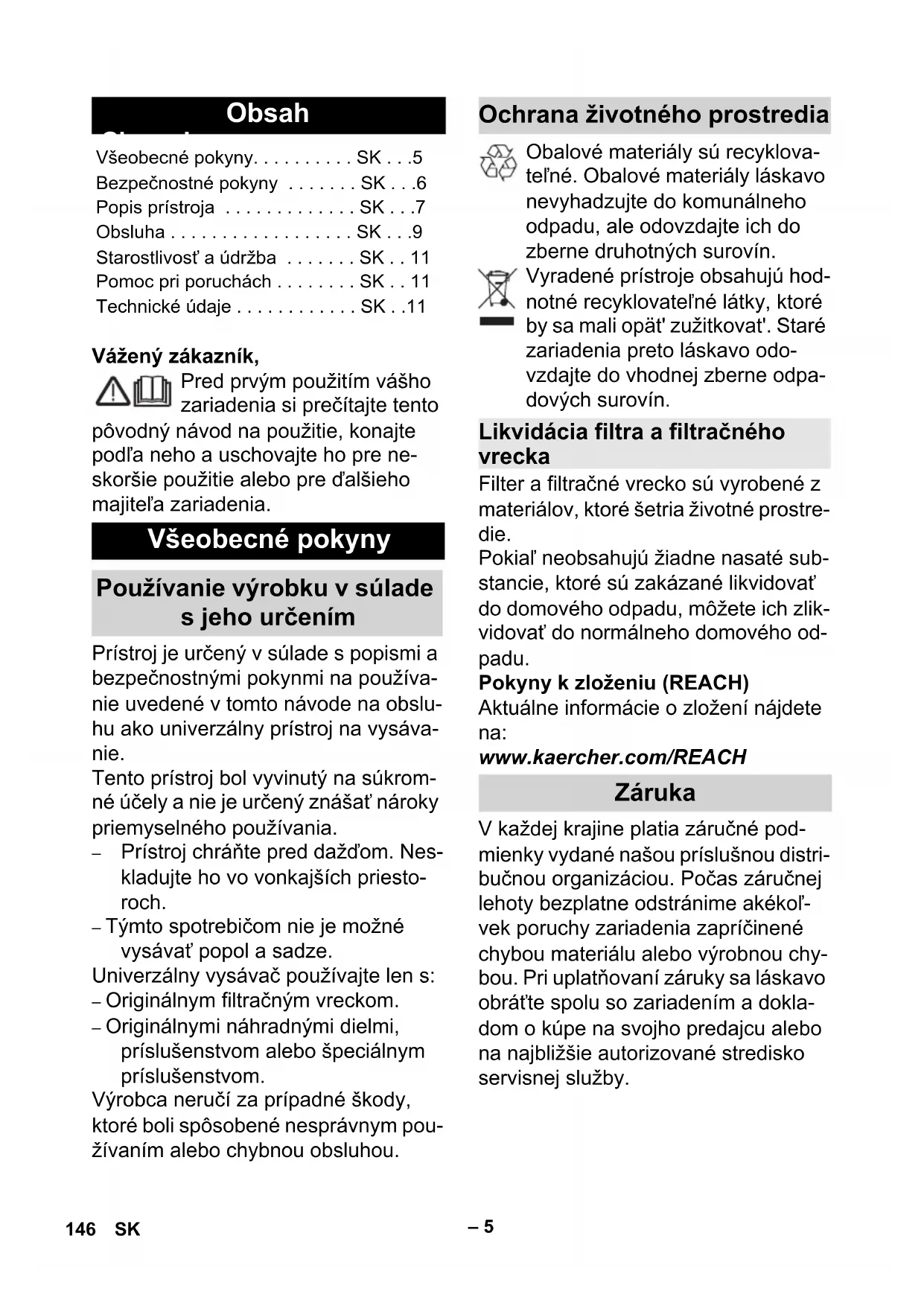 Univerzálny vysávač používajte len s: – Originálnym filtračným vreckom.– Originálnymi náhradnými dielmi, príslušenstvom alebo špeciálnym