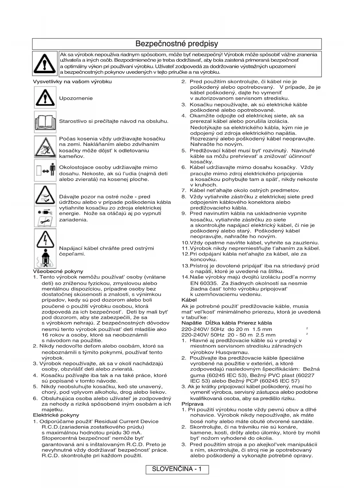 1. Pri použití výrobku noste vždy pevnú obuv a dlhé
