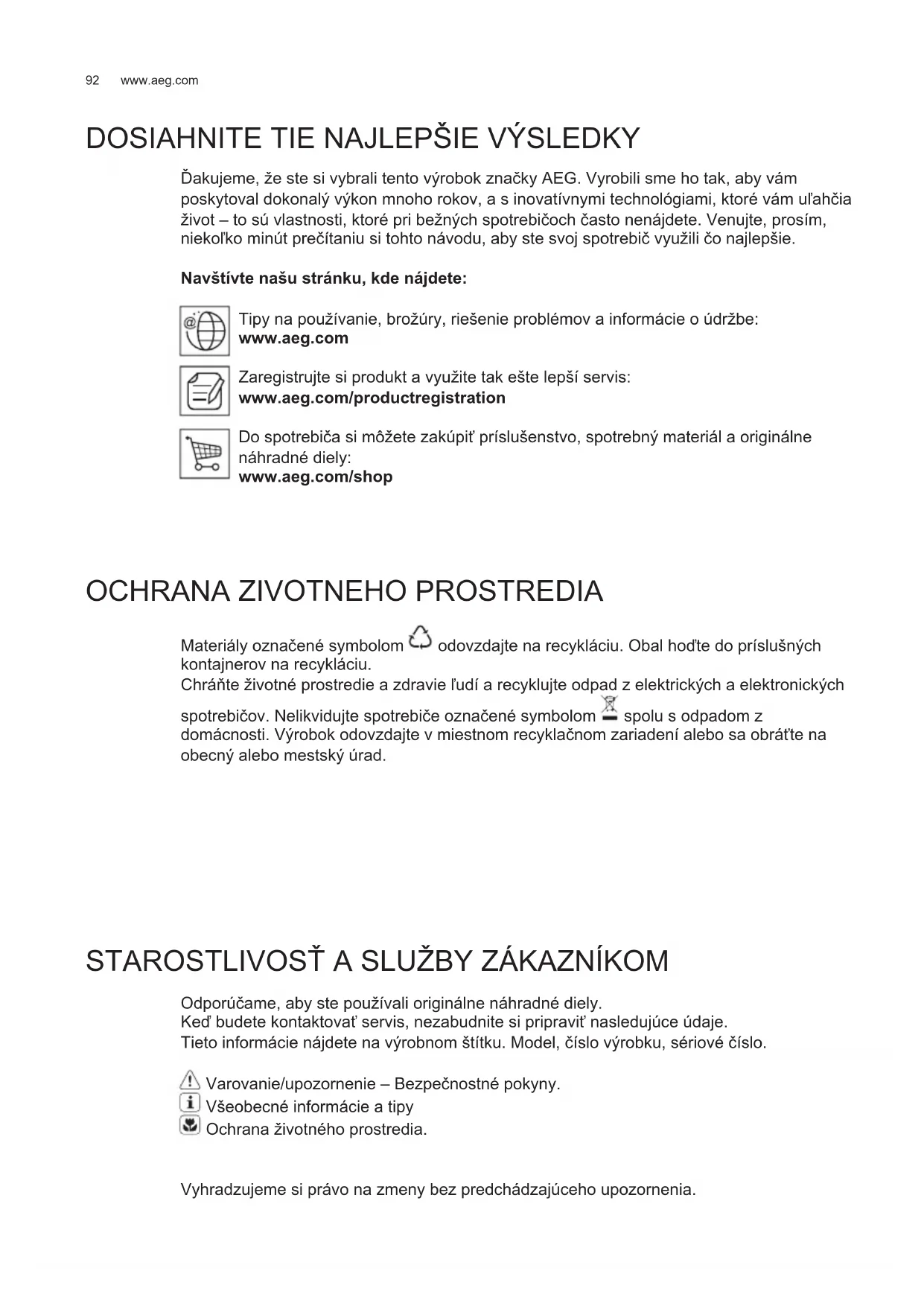 Ďakujeme, že ste si vybrali tento výrobok značky AEG. Vyrobili sme ho tak, aby vám