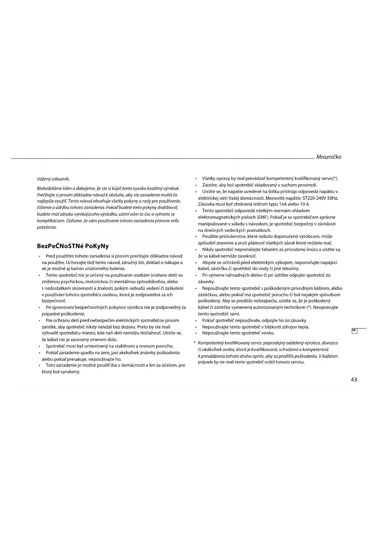 prípade by ste mali tento spotrebič vrátiť tomuto servisu.