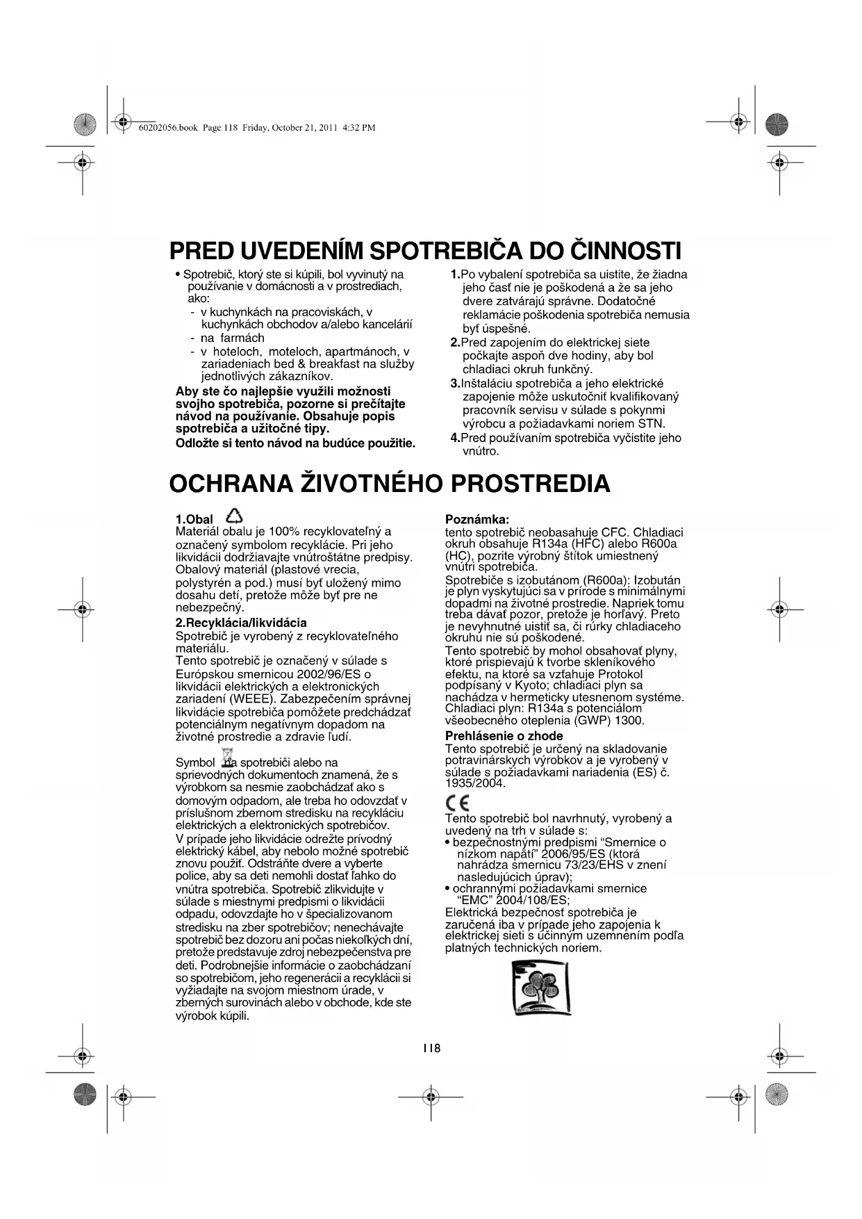 PRED UVEDENÍM SPOTREBIČA DO ČINNOSTI OCHRANA ŽIVOTNÉHO PROSTREDIA
