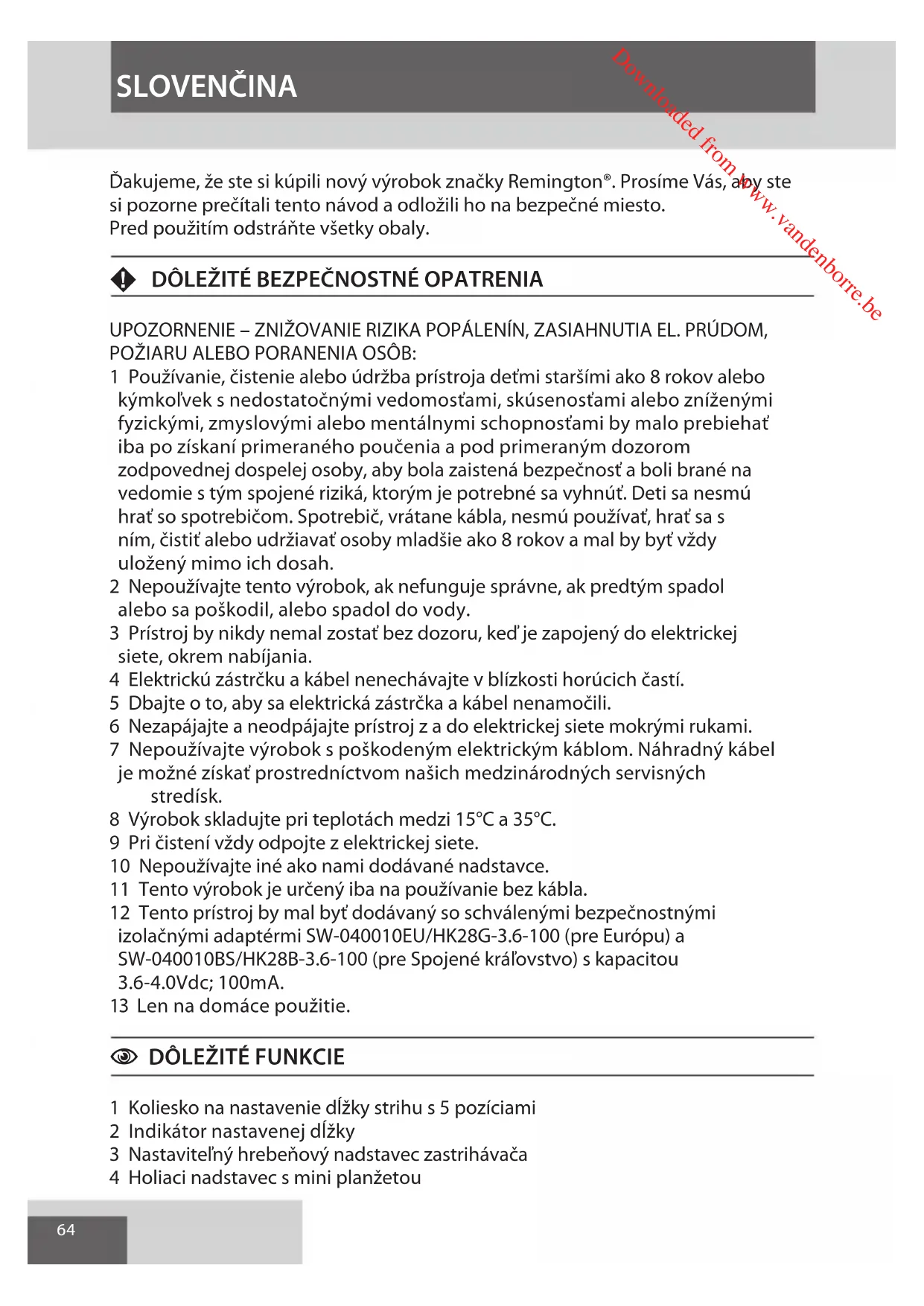 SLOVENČINA Downloaded from www.vandenborre.be65