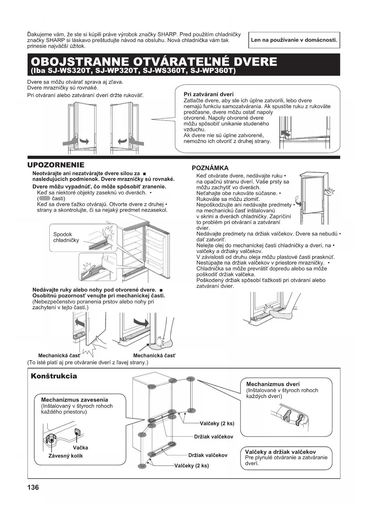 Ďakujeme vám, že ste si kúpili práve výrobok značky SHARP. Pred použitím chladničky