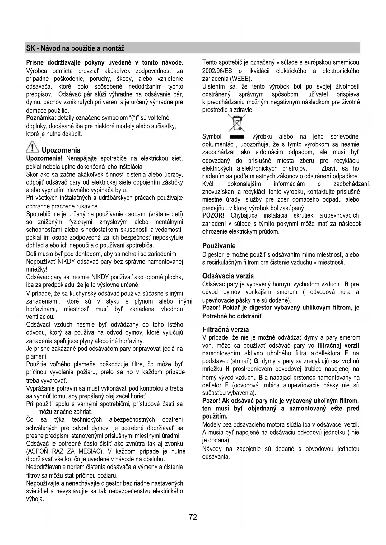 predpisov. Odsávač pár slúži výhradne na odsávanie pár,