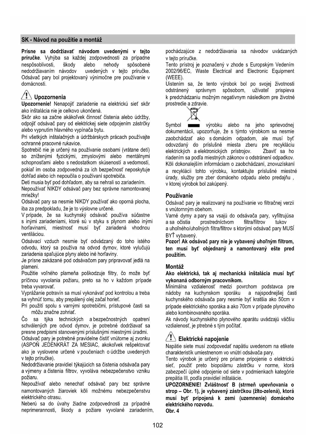 Nepoužívať NIKDY odsávač pary bez správne namontovanej