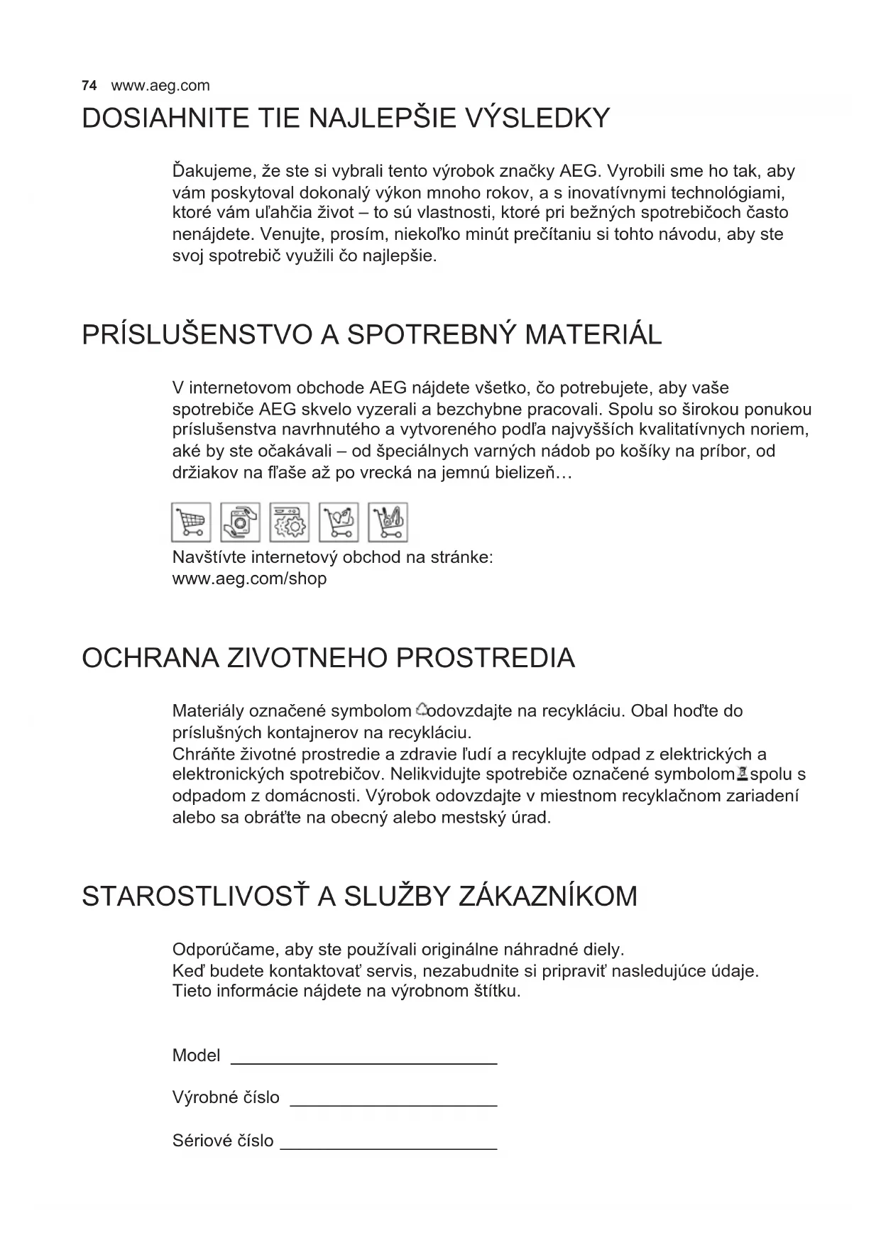 PRÍSLUŠENSTVO A SPOTREBNÝ MATERIÁL V internetovom obchode AEG nájdete všetko, čo potrebujete, aby vaše