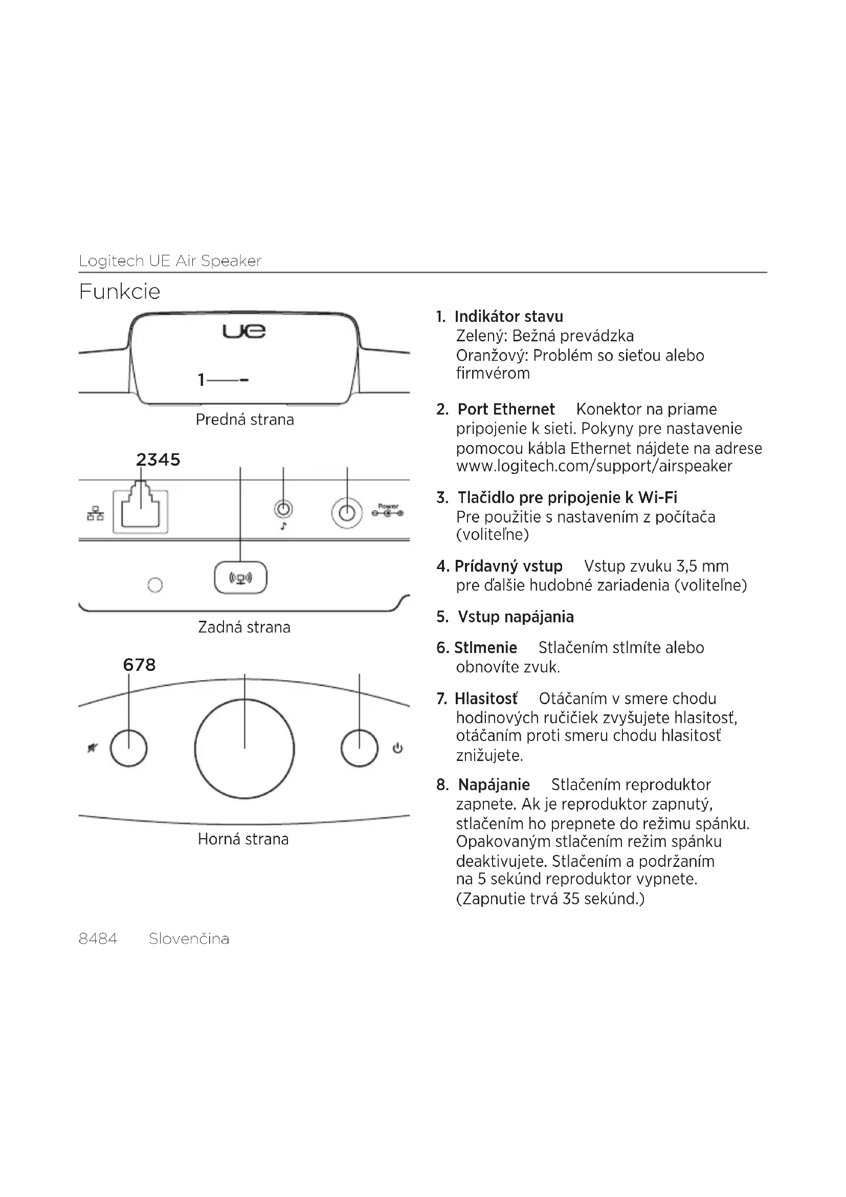 NÁVOD NA OBSLUHU UE Air Speaker LOGITECH
