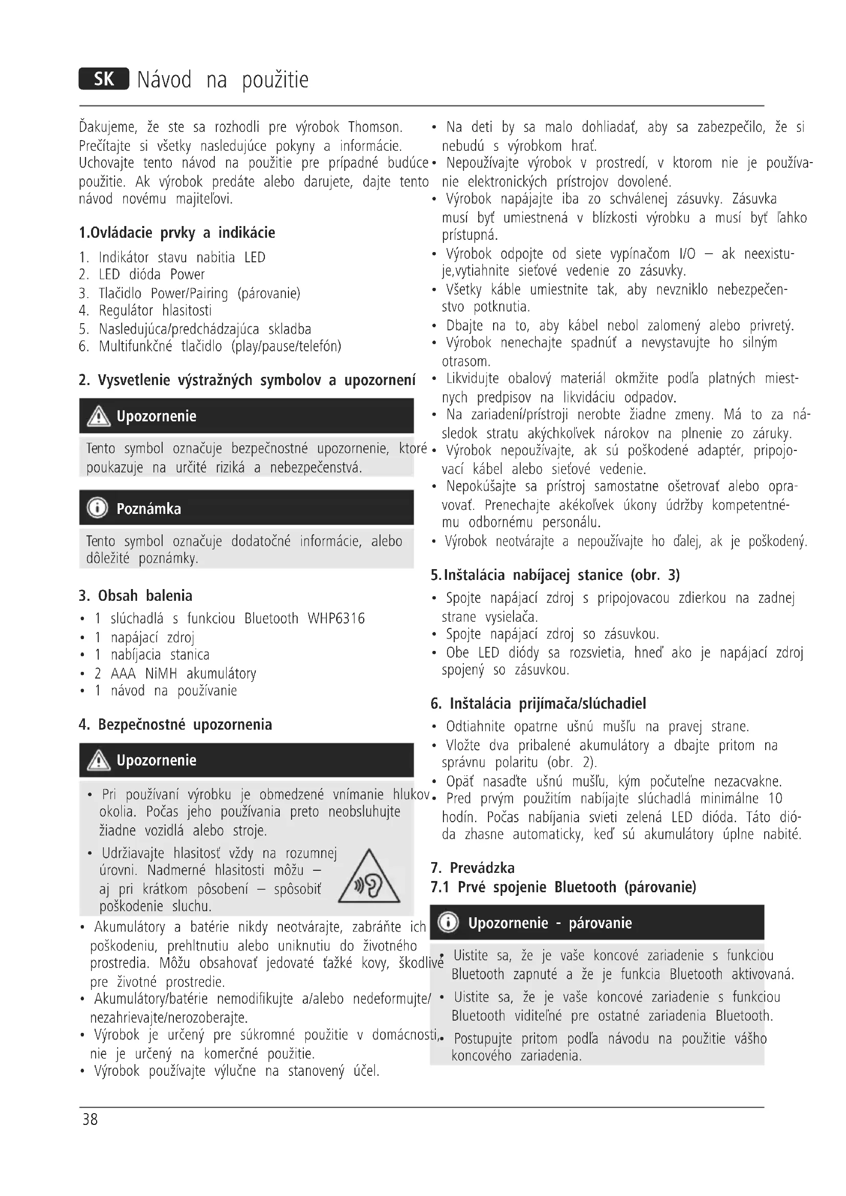 NÁVOD NA OBSLUHU WHP6316BT THOMSON