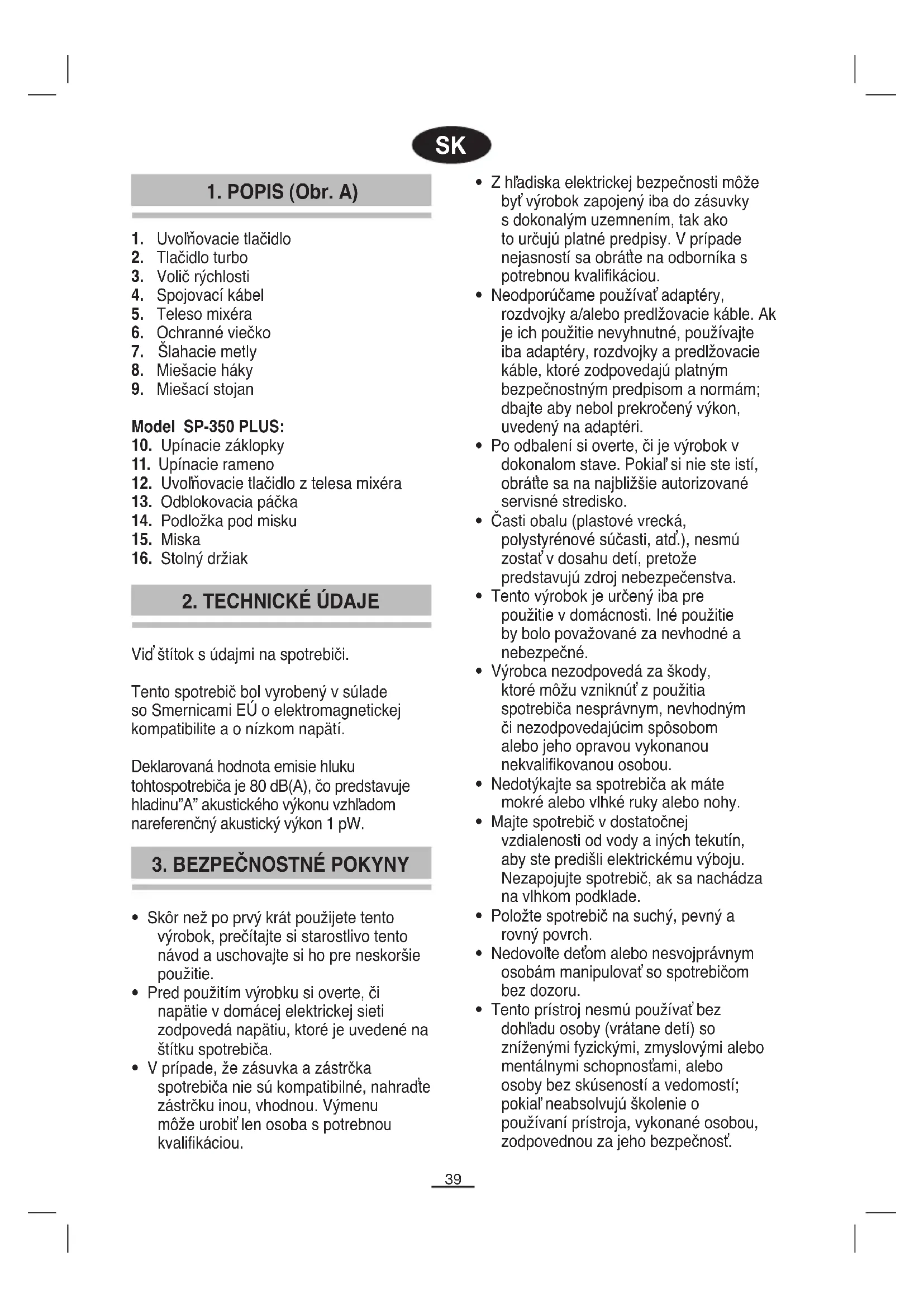 - Pred použitím výrobku si overte, či napätie v domácej elektrickej sieti zodpovedá napätiu, ktoré je uvedené na štítku spotrebiča.