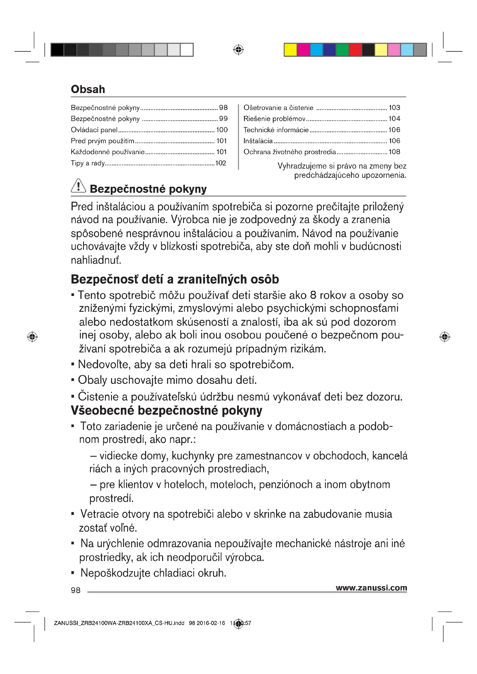 NÁVOD NA OBSLUHU ZRB24100XA ZANUSSI