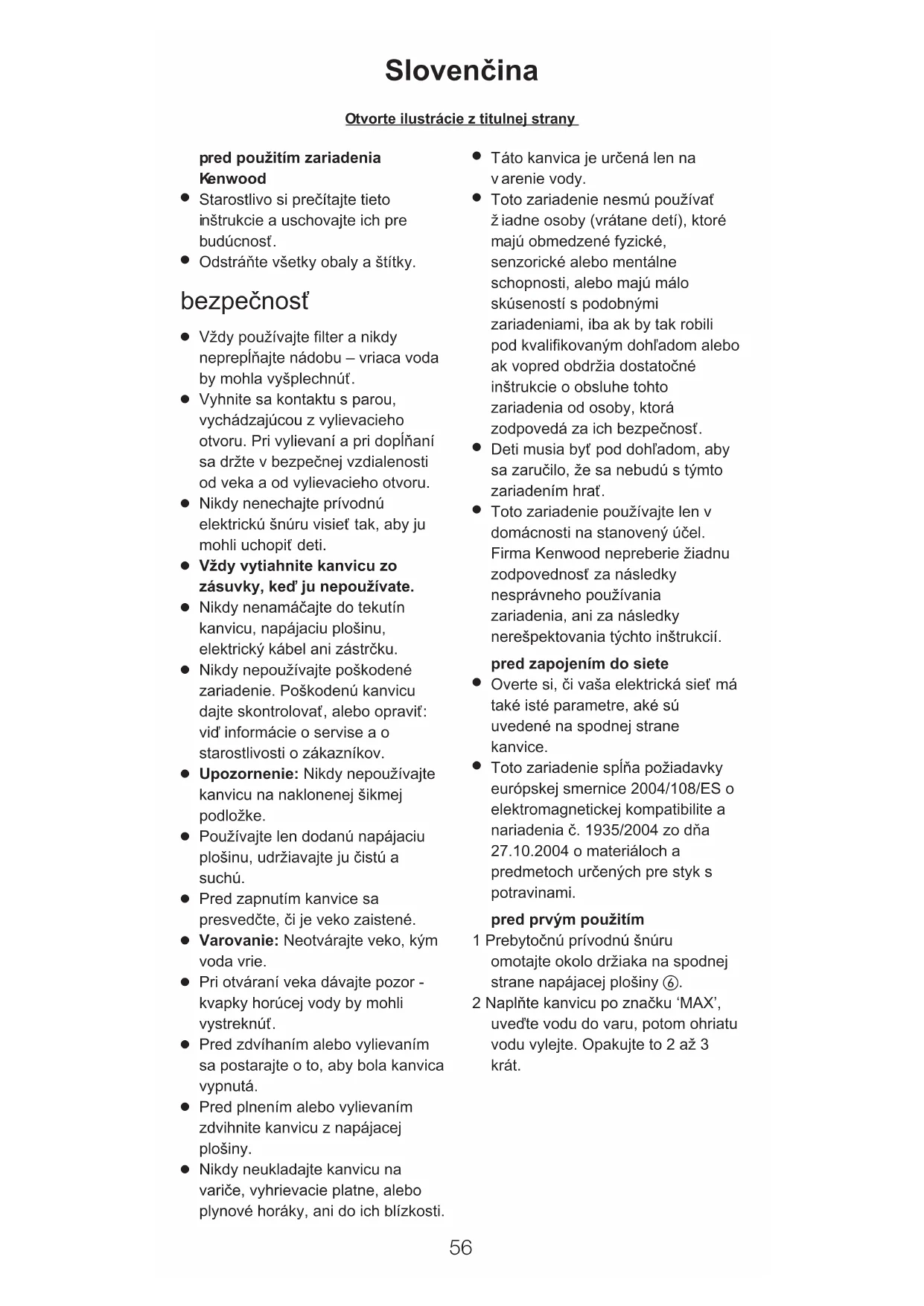 Toto zariadenie používajte len v domácnosti na stanovený účel. Firma Kenwood nepreberie žiadnu zodpovednosť za následky nesprávneho používania zariadenia, ani za následky nerešpektovania týchto inštrukcií. pred zapojením do siete