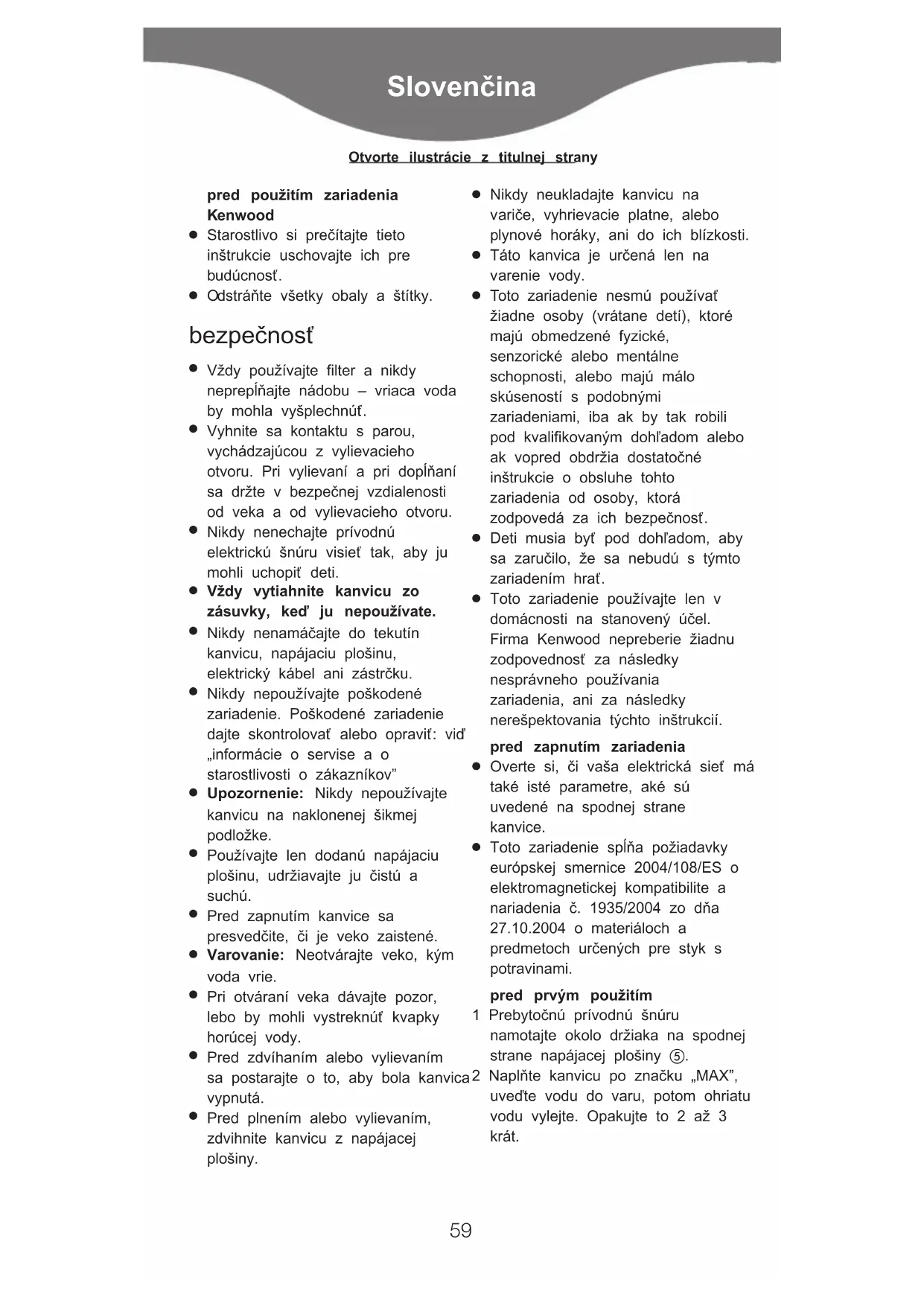 Toto zariadenie používajte len v domácnosti na stanovený účel. Firma Kenwood nepreberie žiadnu zodpovednosť za následky nesprávneho používania zariadenia, ani za následky nerešpektovania týchto inštrukcií. pred zapnutím zariadenia