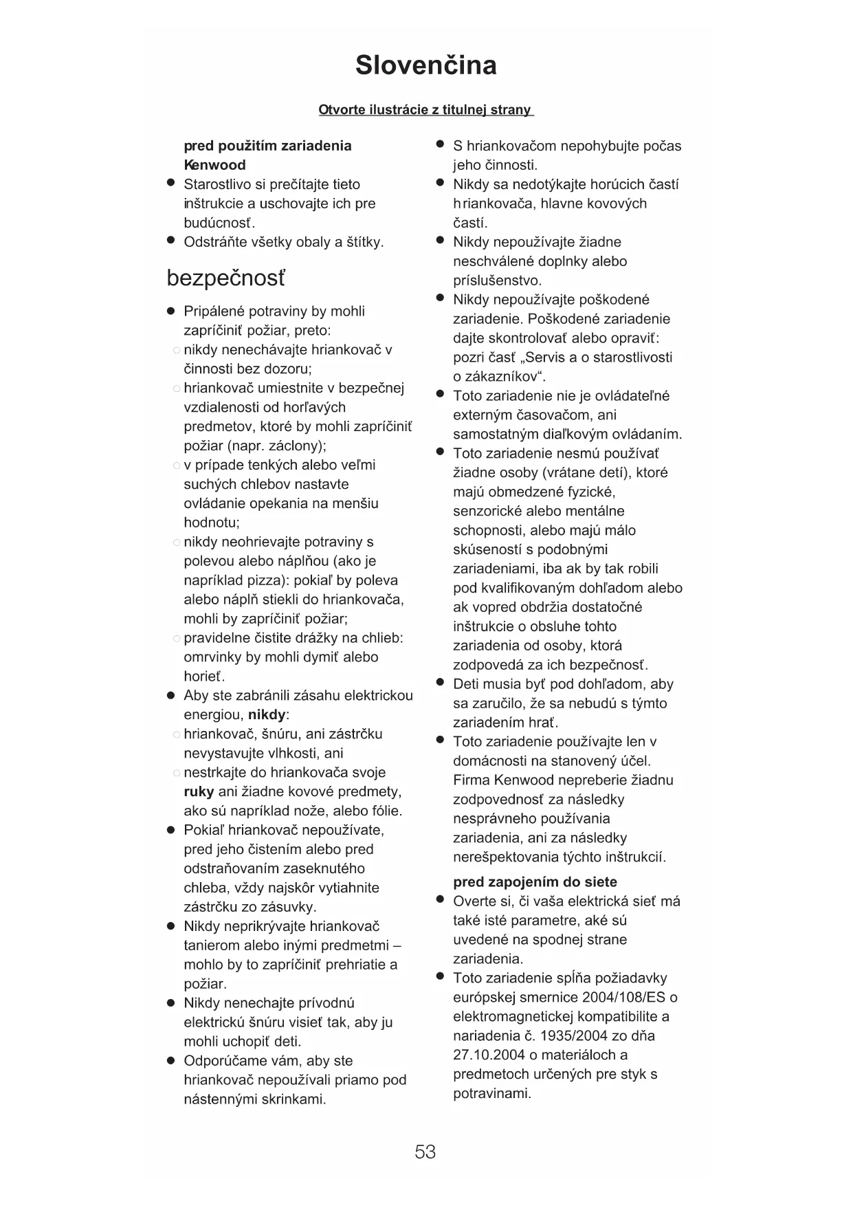Toto zariadenie používajte len v domácnosti na stanovený účel. Firma Kenwood nepreberie žiadnu zodpovednosť za následky nesprávneho používania zariadenia, ani za následky nerešpektovania týchto inštrukcií. pred zapojením do siete
