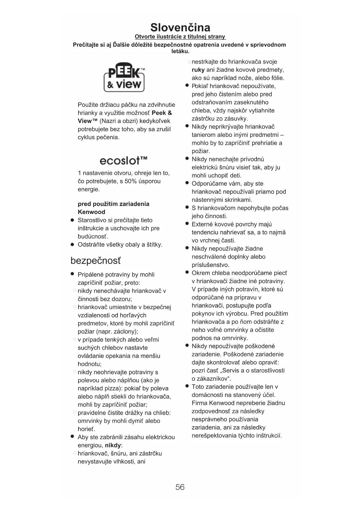 55Použite držiacu páčku na zdvihnutie hrianky a využitie možnosť Peek & View™ (Nazri a obzri) kedykoľvek potrebujete bez toho, aby sa zrušil cyklus pečenia. 1 nastavenie otvoru, ohreje len to, čo potrebujete, s 50% úsporou energie. pred použitím zariadenia Kenwood