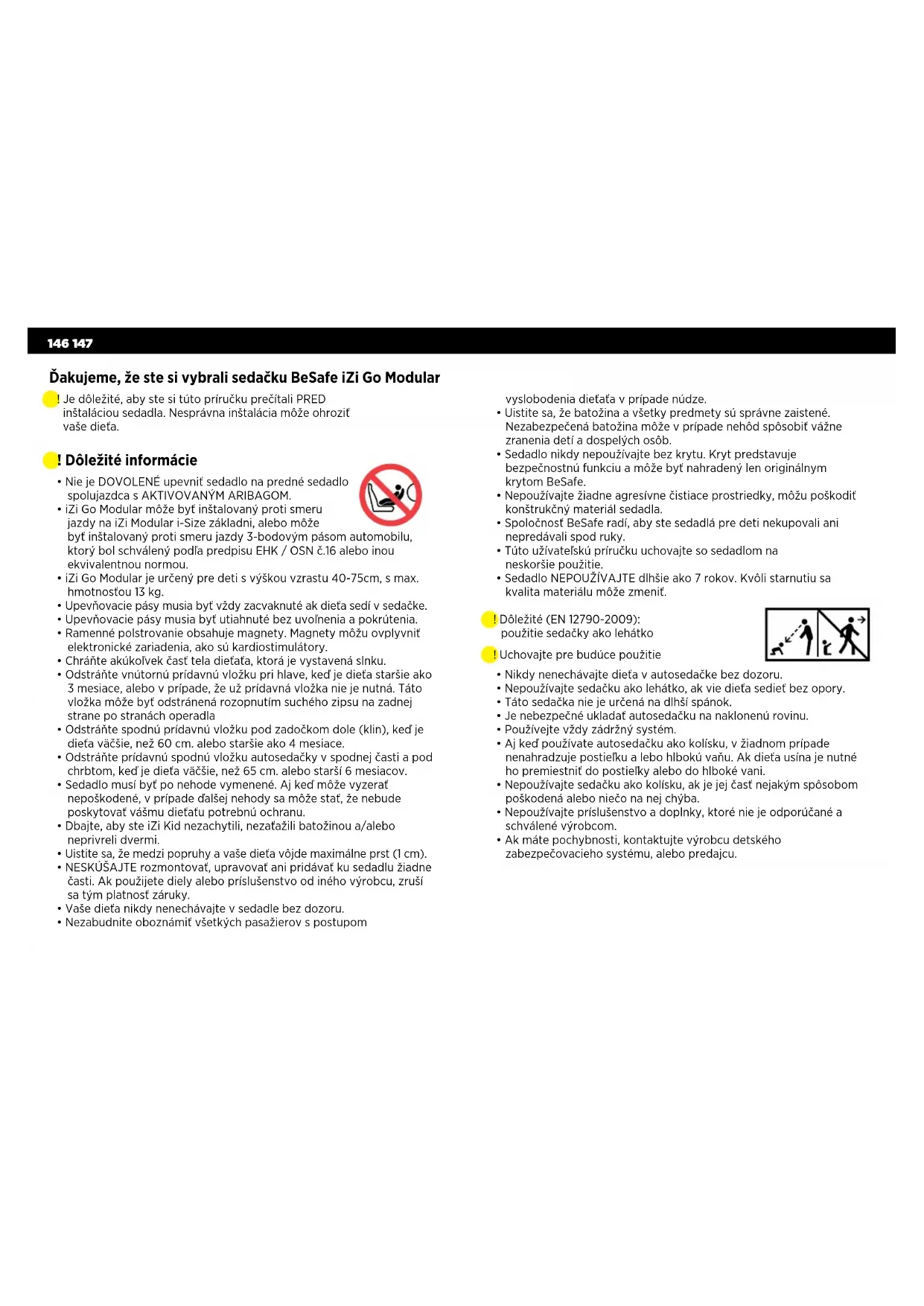 - Nezabudnite oboznámiť všetkých pasažierov s postupom Ďakujeme, že ste si vybrali sedačku BeSafe iZi Go Modular ! Je dôležité, aby ste si túto príručku prečítali PRED inštaláciou sedadla. Nesprávna inštalácia môže ohroziť vaše dieťa. vyslobodenia dieťaťa v prípade núdze.