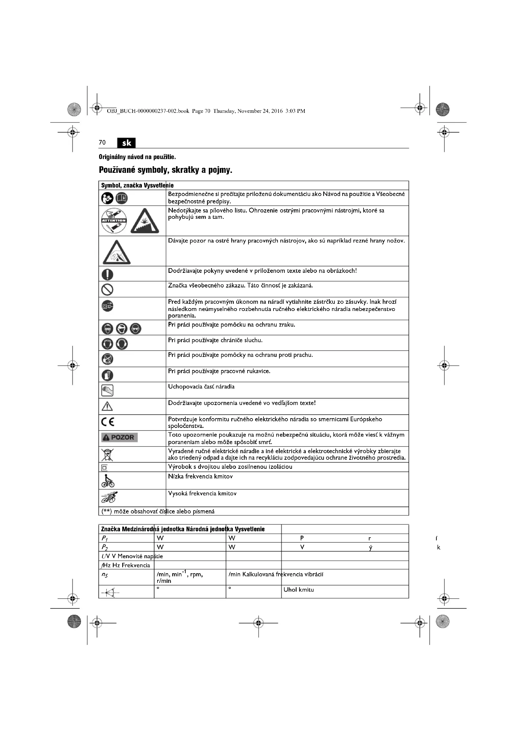 | m, s, kg, A, mm, V, W, Hz, N, °C, dB, min, m/s2 | m, s, kg, A, mm, V, W, Hz, N, °C, dB, min, m/s2 | Základné a odvodné jednotky Medzinárodného systému jednotiek SI. | |